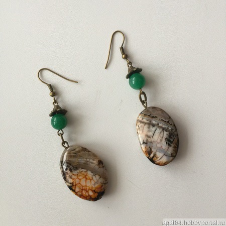 Серьги с агатом и бусины из нефрита.Природная красота самоцветов и оригинальное исполнение будут в моде всегда!