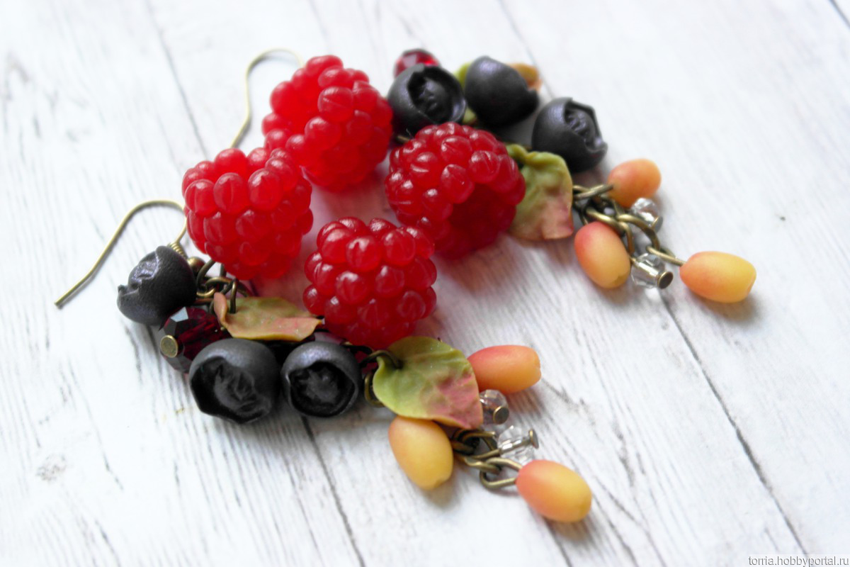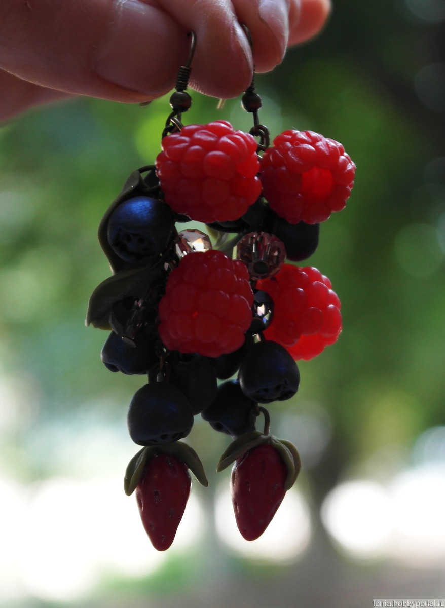 Серьги с яркими сочными аппетитными ягодами из полимерной глины. С этим аксессуаром вы точно не останетесь незамеченной. Возможно изготовление колье, браслета, кольца и броши.
