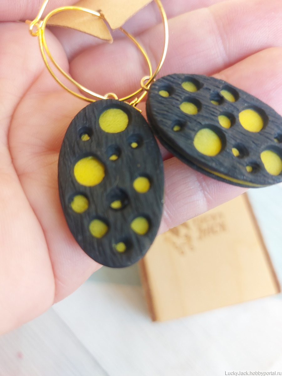 Желто-черные Серьги-кольца сделаны вручную из полимерной глины. Яркие, легкие, практически не весомые.