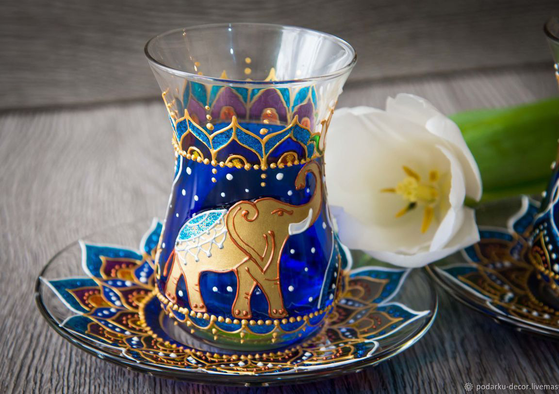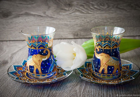 Стильные и нежные армуды с блюдечками Индийский слон элегантно впишутся в любой интерьер, станут трендовым и незабываемым подарком на любую дату!.