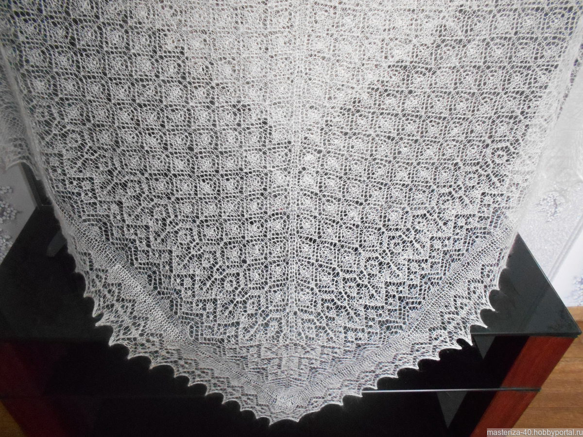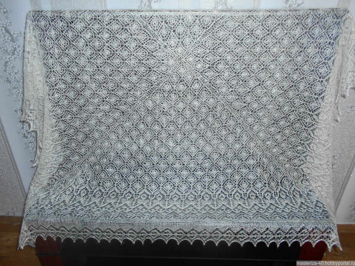 Ажурная шаль "Северная жемчужина",(автор дизайна nagetim СМ), из козьего пуха с добавлением шелка, полностью ручная работа, связана от центра, вес 150 гр.