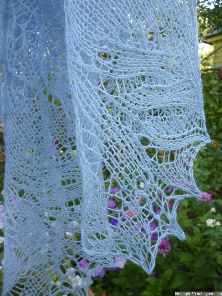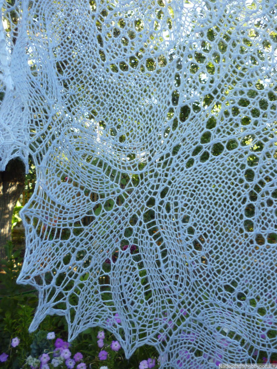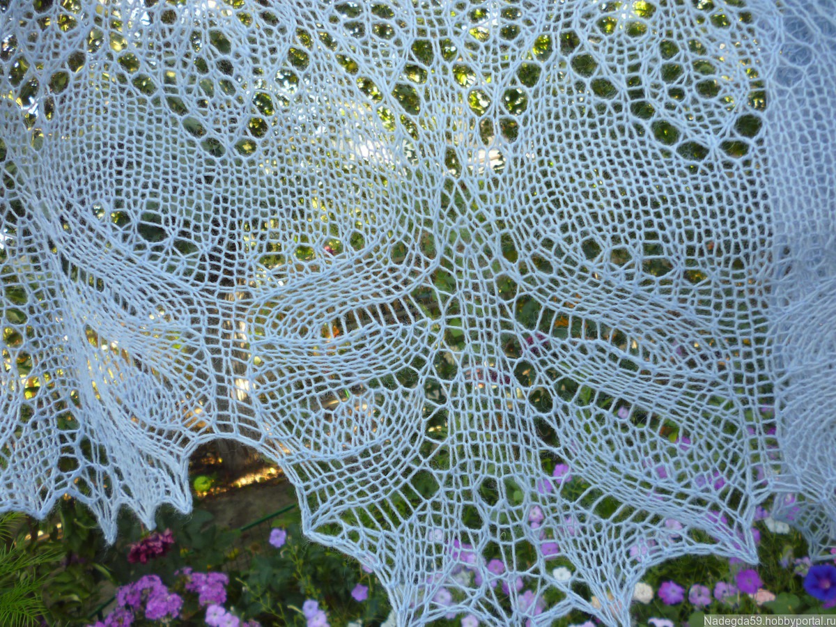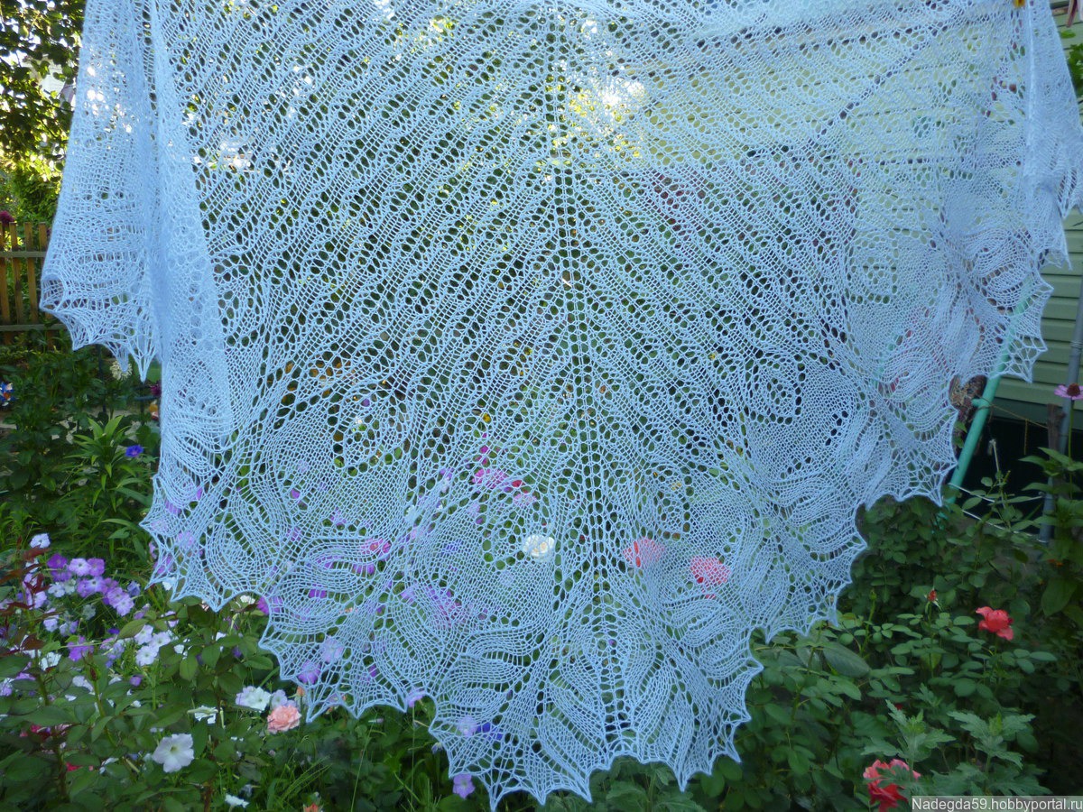 Ажурная шаль ,связана по мотивам шали "танец райских птиц "