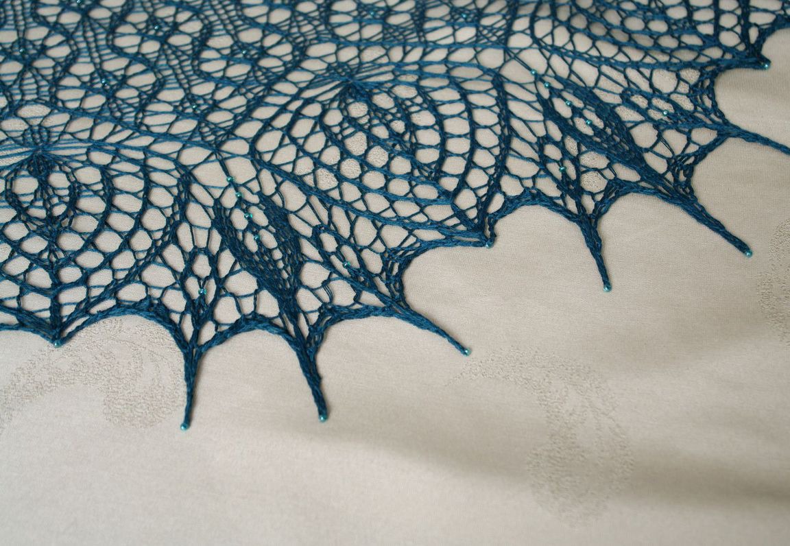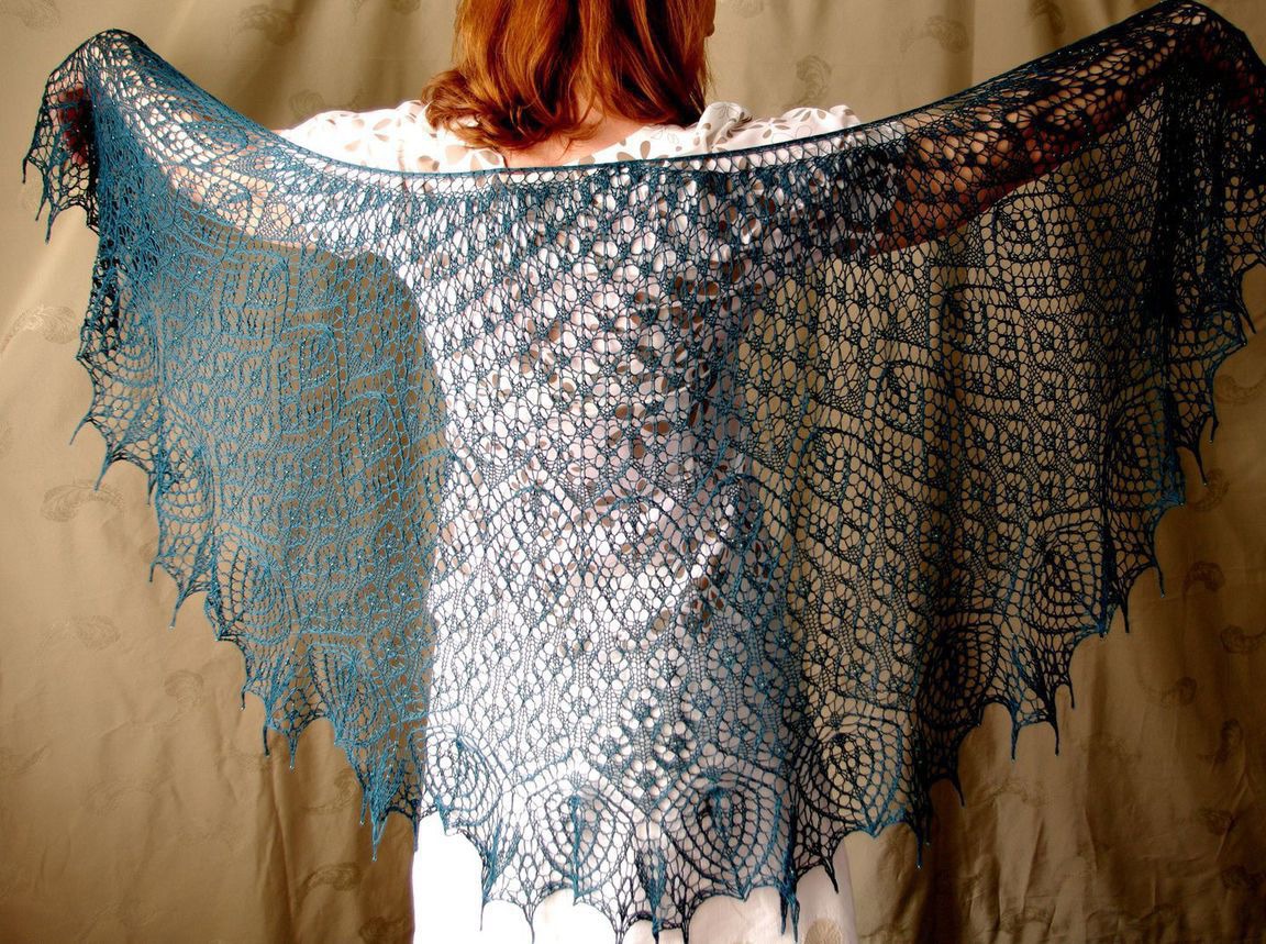 Ажурная шаль из тонкого итальянского шелка шикарного цвета темной изумрудной морской волны, украшена чешским бисером. Окутает Вас нежнейшим невесомым облачком уюта и комфорта, подарит неповторимое ощущение натурального шелка на Вашей коже. Вес изделия 117 грамм.