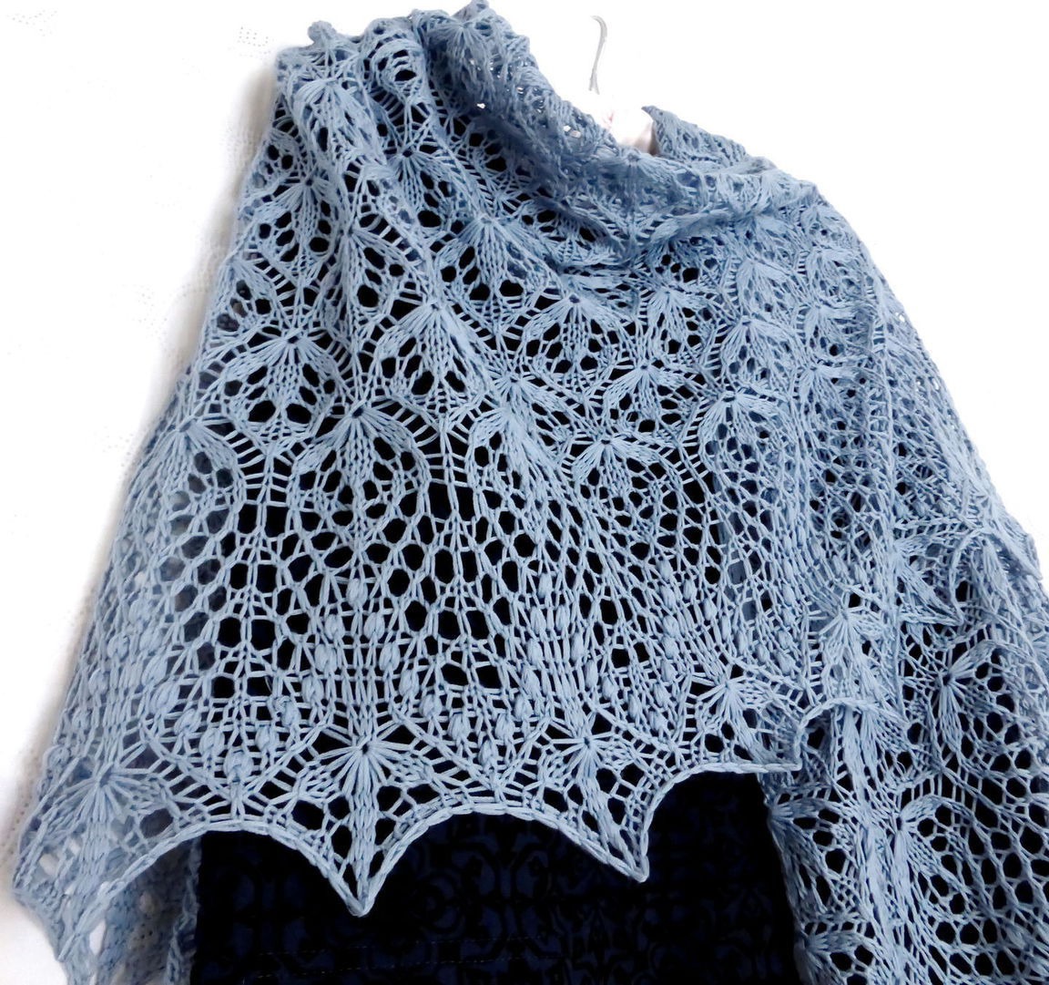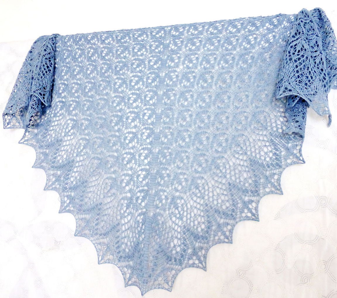 шаль, шаль спицами, шаль ажурная, шаль в подарок, шаль ручная работа, шаль вязаная, ажурная шаль, шаль из шерсти, купить шаль, вязаная шаль, шерстяная шаль, легкая шаль, шаль вязаная спицами, шаль-паутинка, тонкая шаль, серо-голубой, мериносовая шаль, шарф вязаный палантин