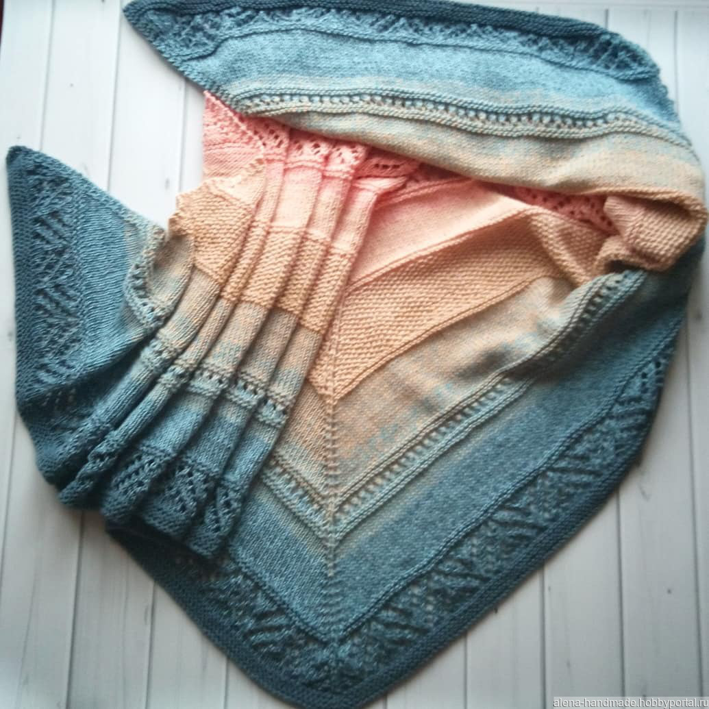 Бактус из полухлопка. Пряжа YarnArt flowers. Размер в размахе 180 см, по средней линии 80-85 см
