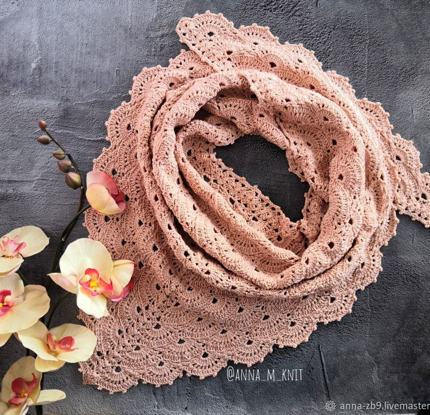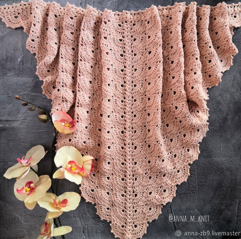 шаль, подарок на день рождения, бактус, подарок девушке, подарок на 8 марта, шаль в подарок, подарок на любой случай, шаль крючком, кремовый, бактус вязаный, бактус женский, пудровый цвет