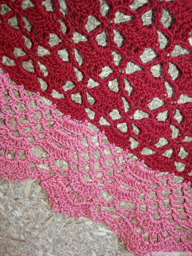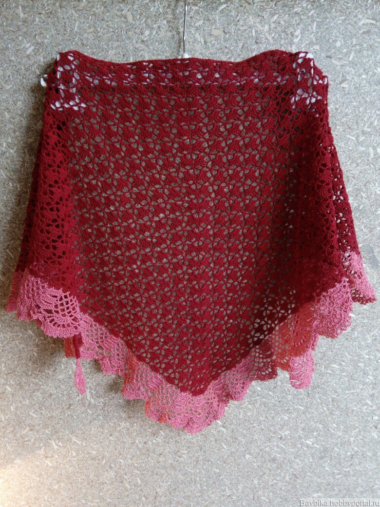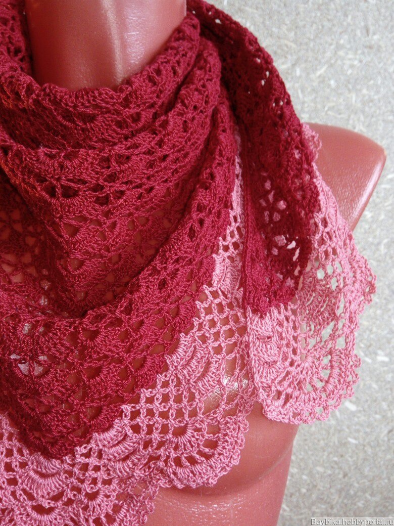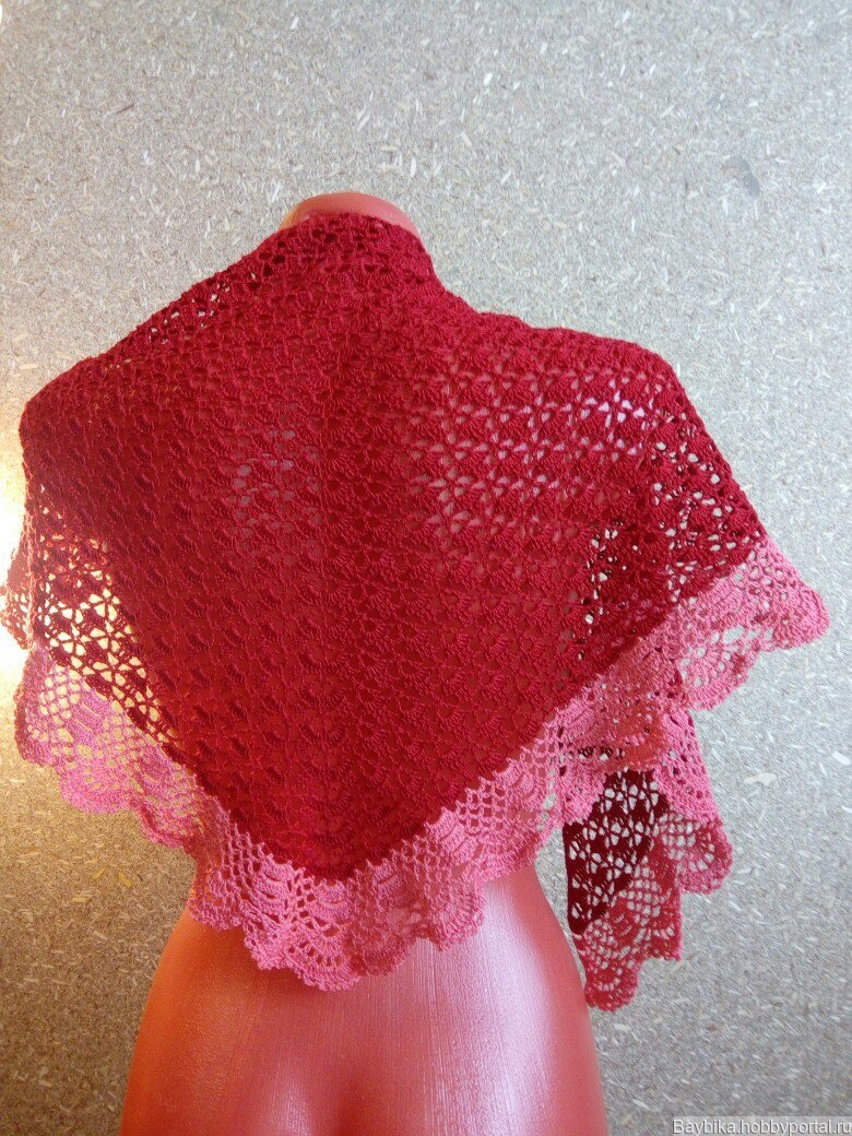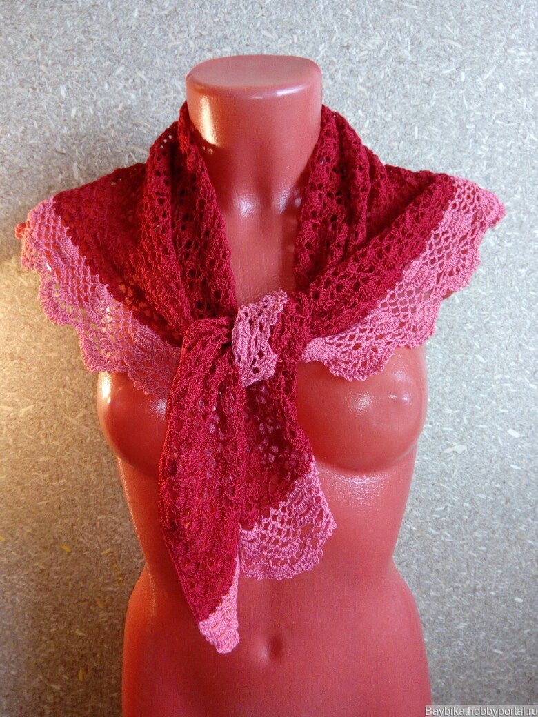 красный, бактус, подарок, стильный, модный, коралловый, платок вязаный, хлопок, ажурный, платок, летний, красивый