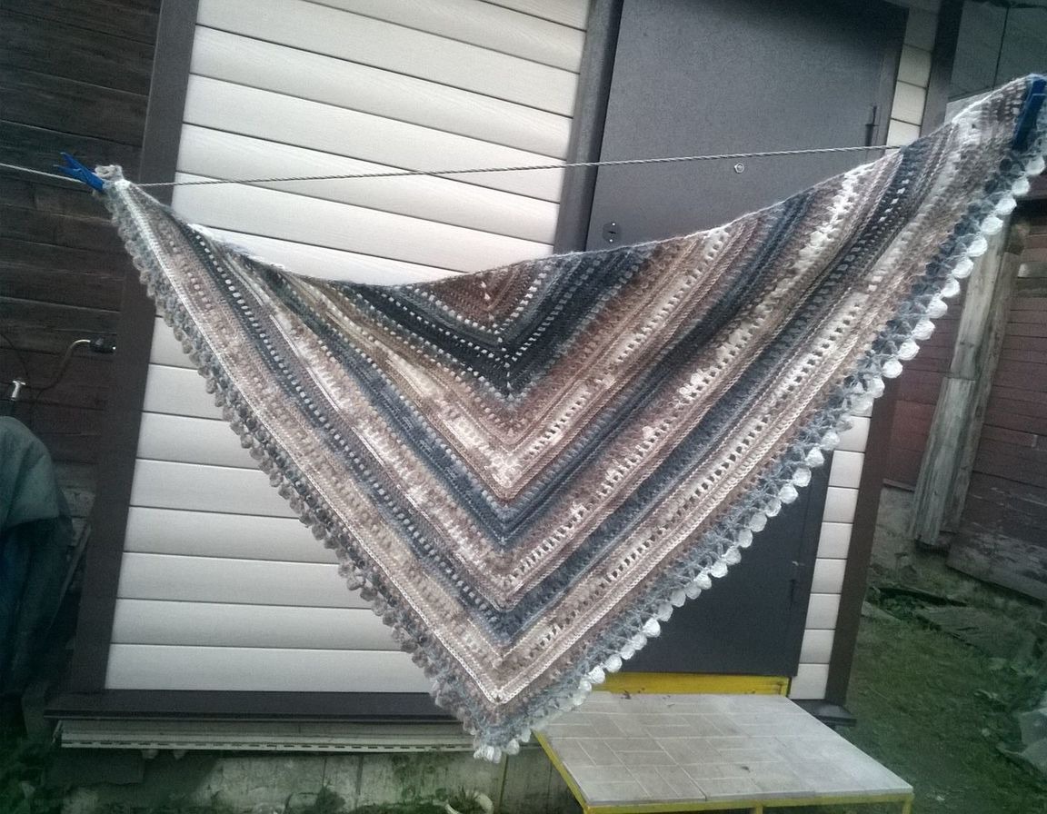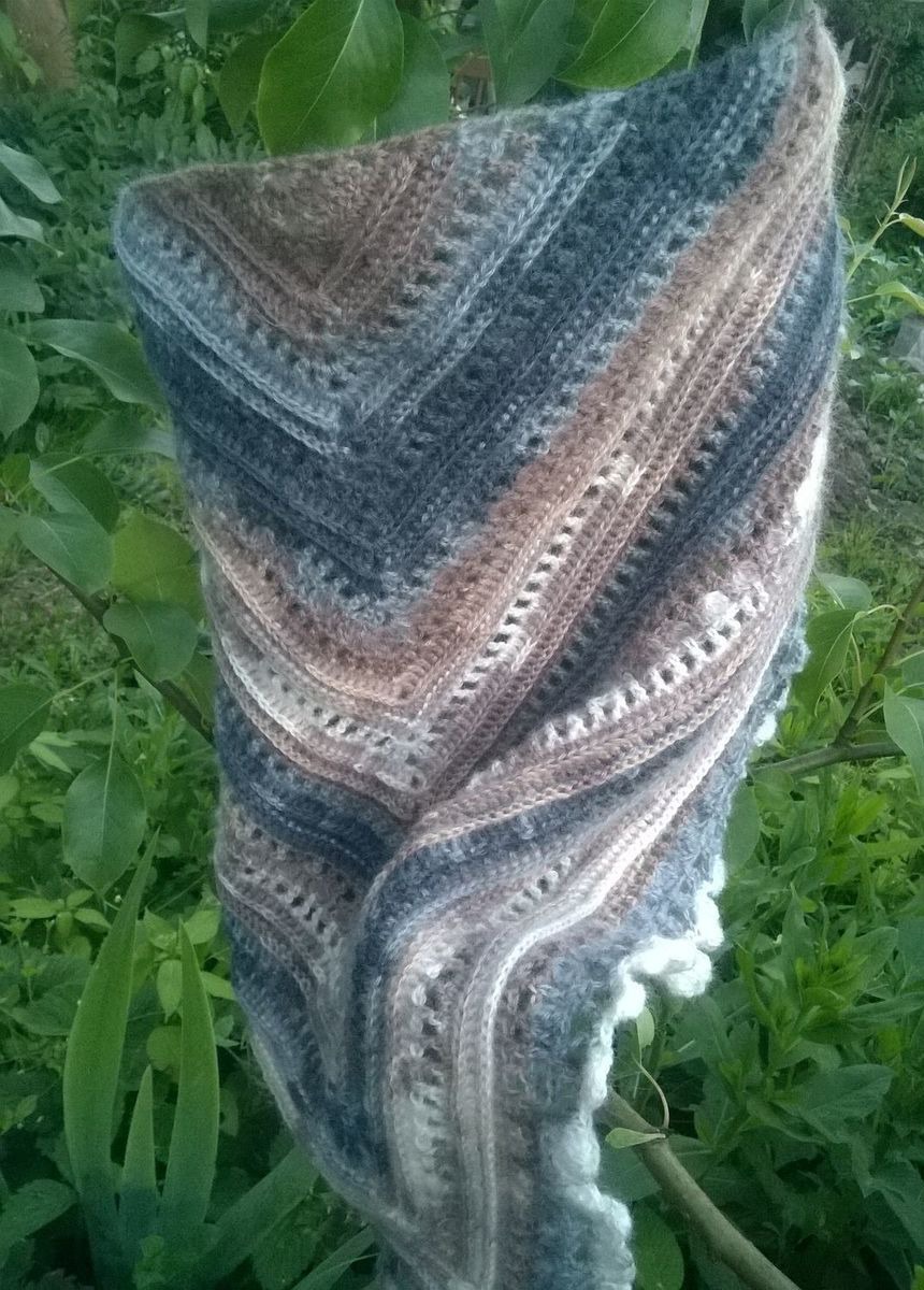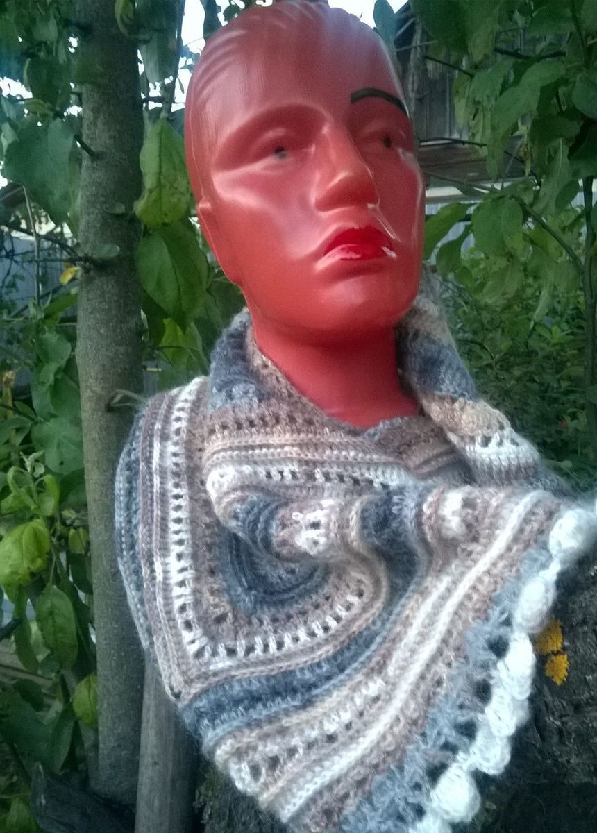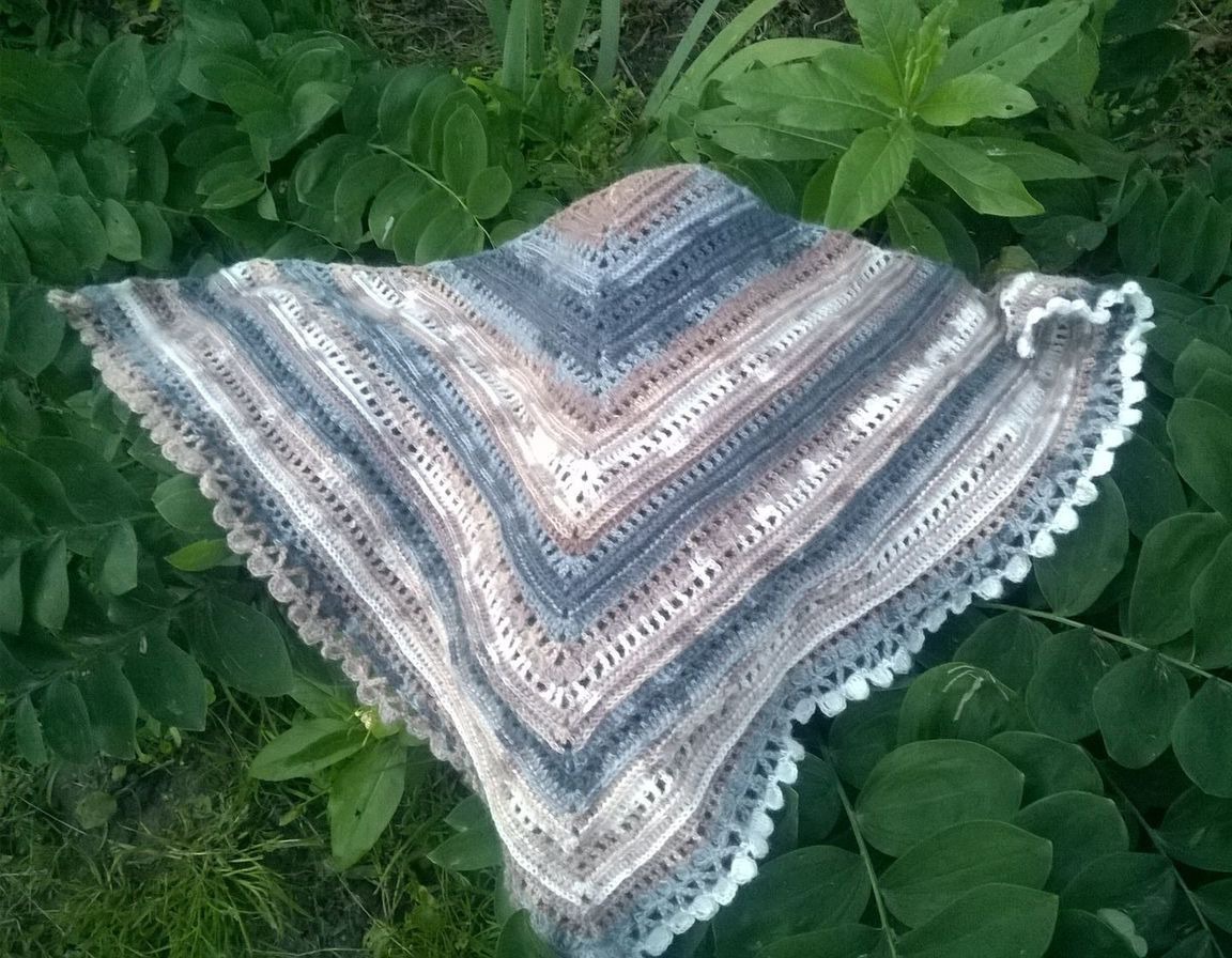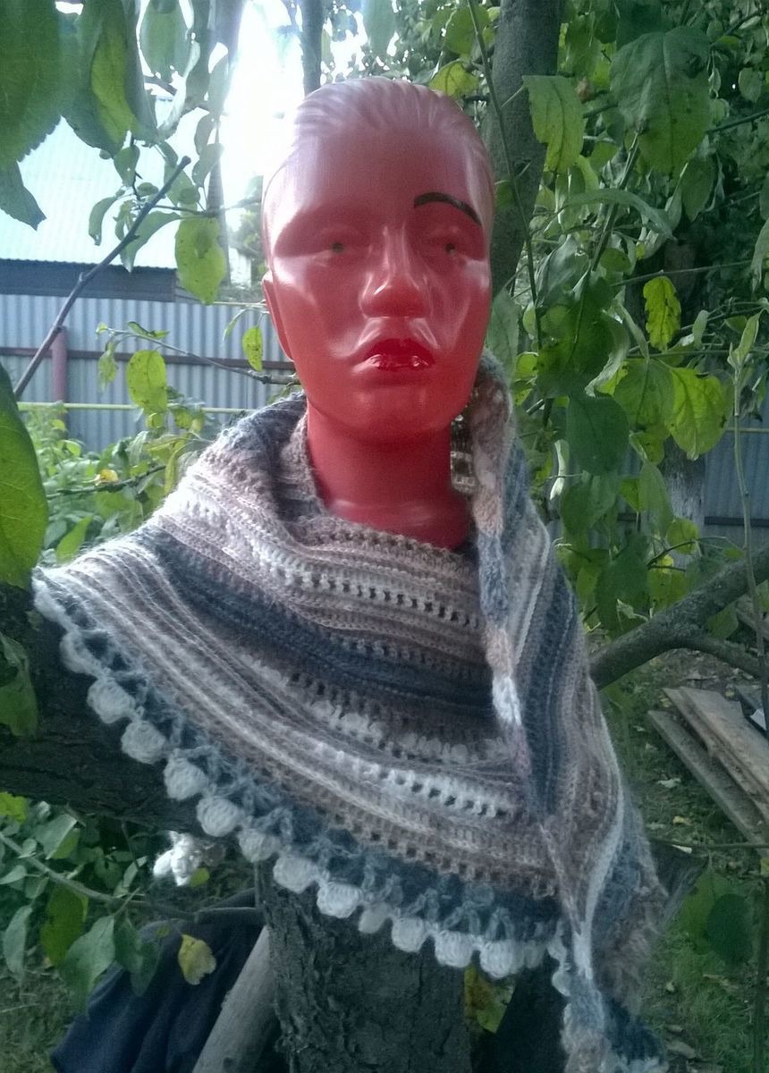 шаль, бактус, вязание, комбинированный, вязаный, вязание крючком, шейный платок, вязаный бактус