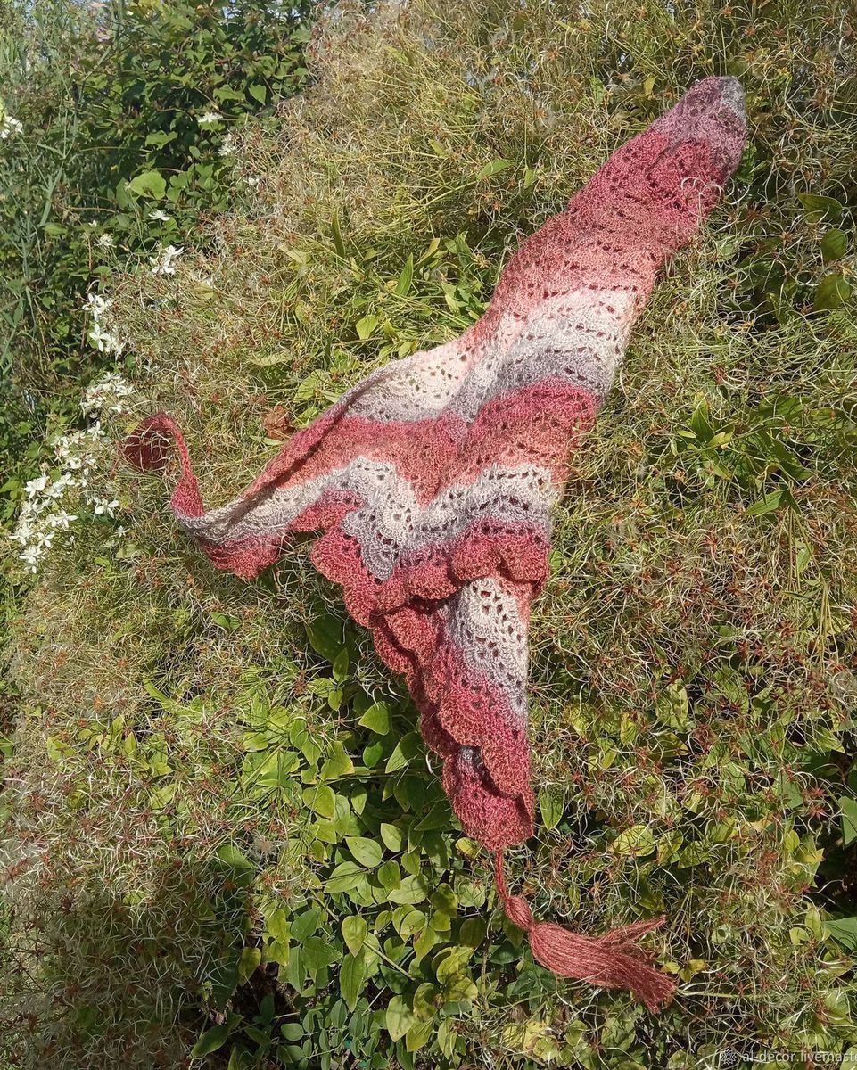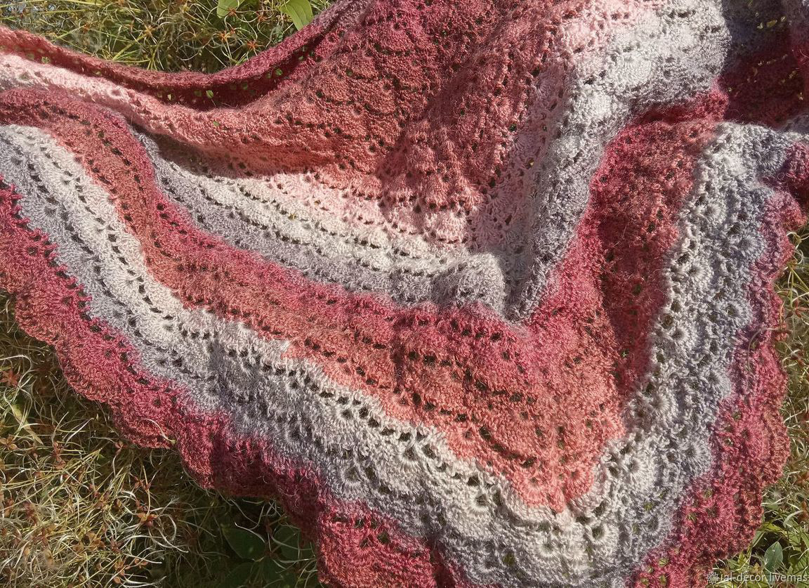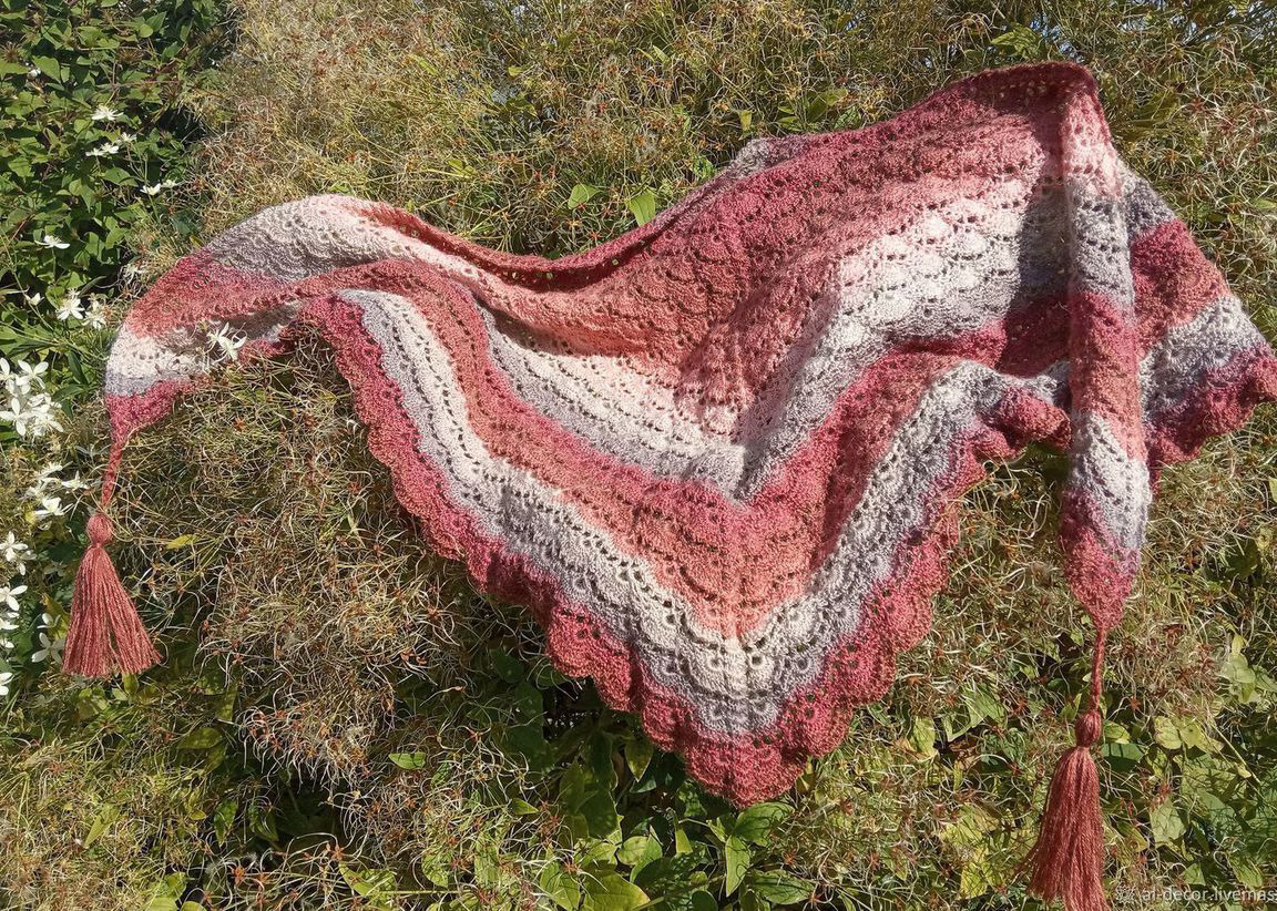 Шаль бактус По волнам связан крючком из смешанной пряжи (шерсть с акрилом). Бактус уже который год не теряет свою актуальность.Согреет Вас холодной зимой. Прекрасный подарок для любой женщины.