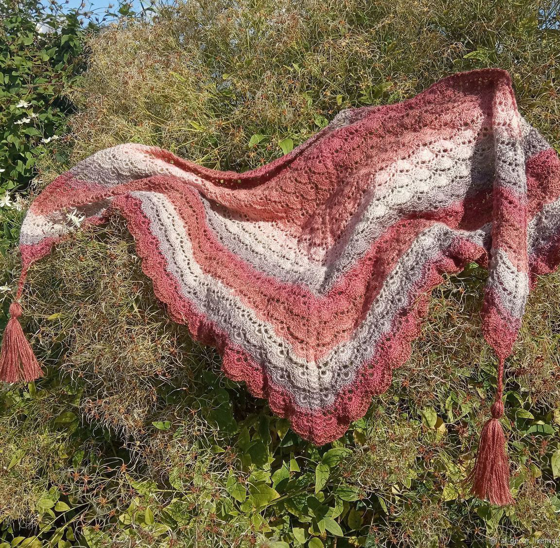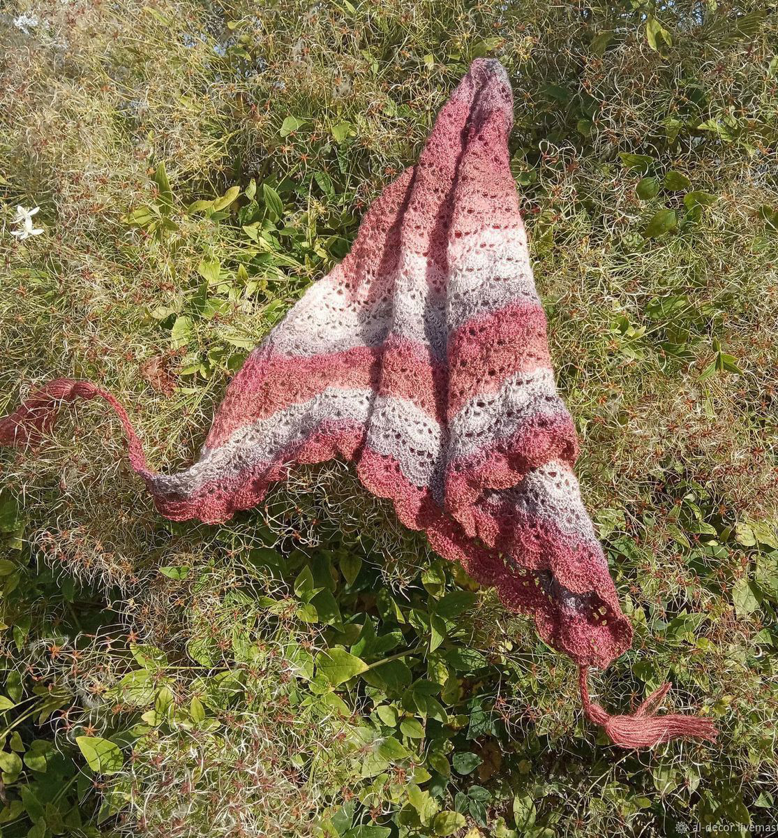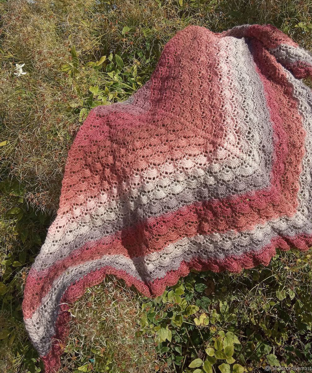 шаль, бактус, подарок женщине, подарок на 8 марта, подарок, шаль крючком, комбинированный, бактус вязаный, бактус женский, подарок на новыйгод