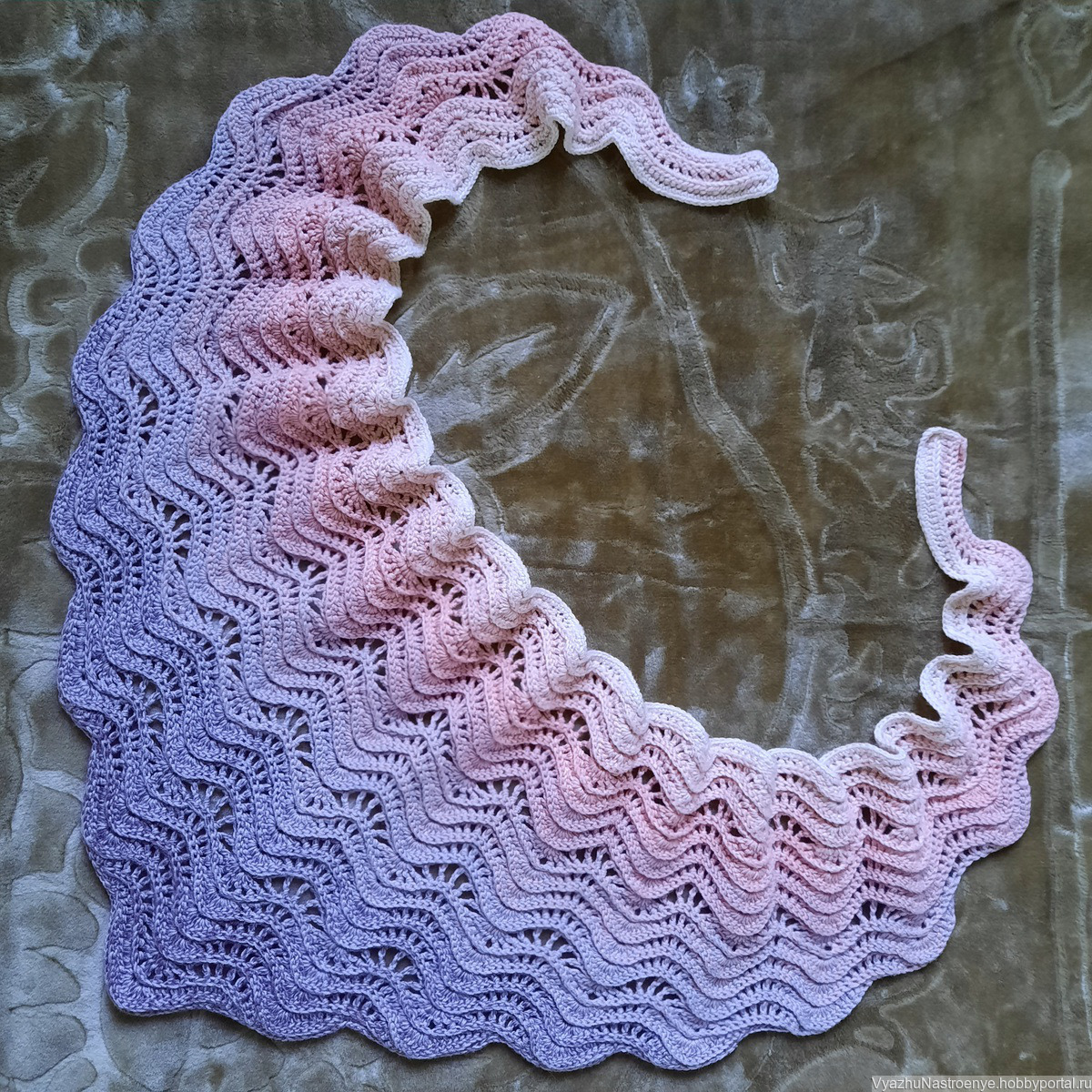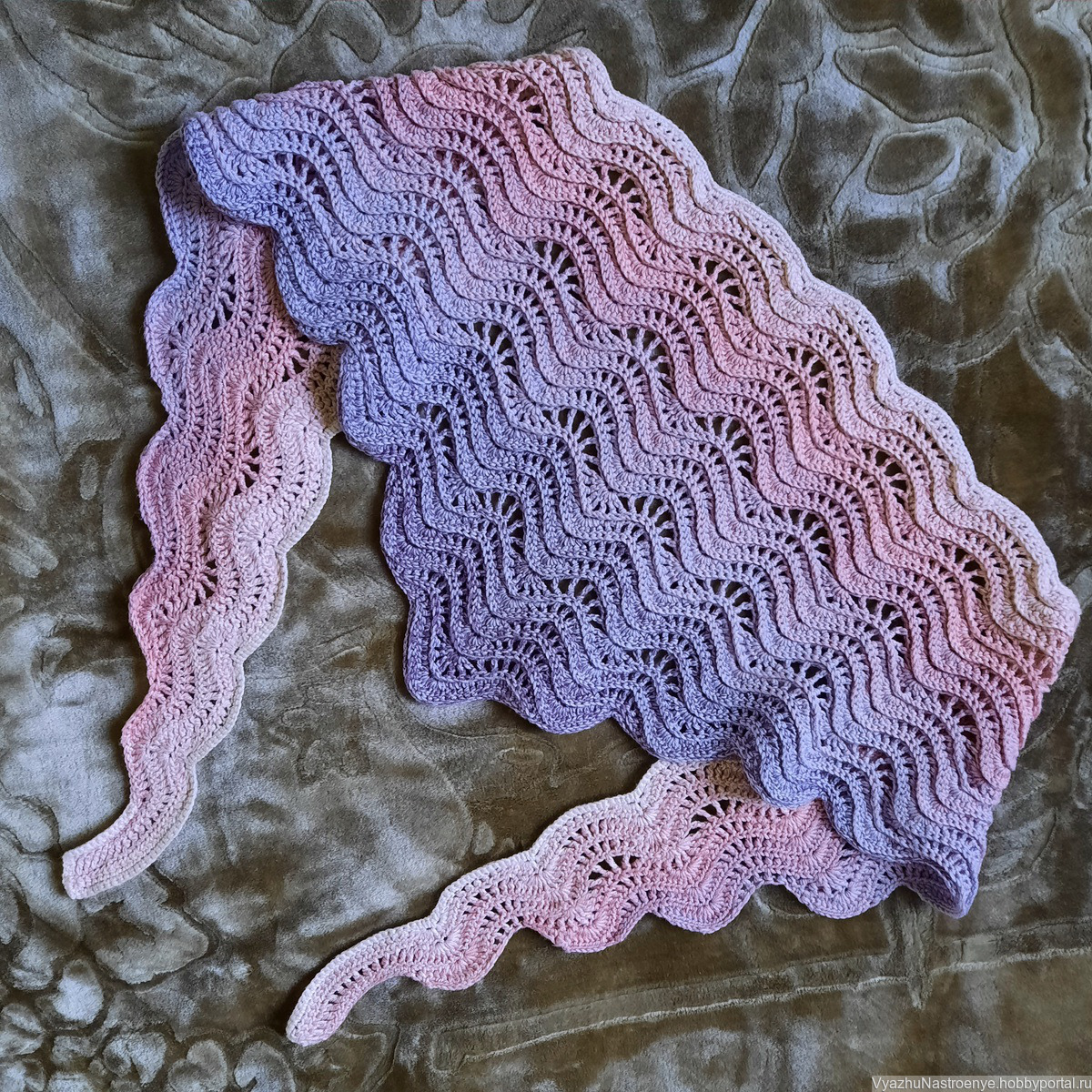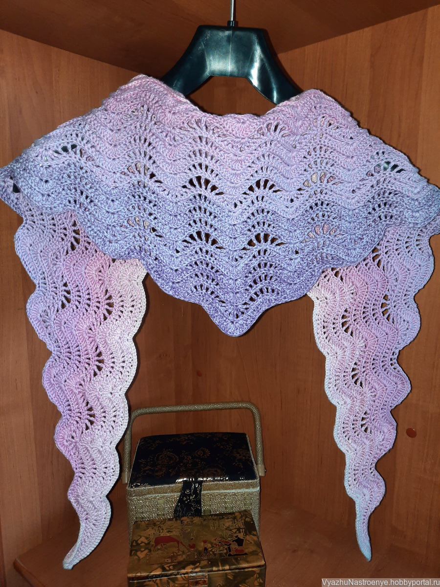 подарок девушке, подарок женщине, подарок подруге, весенний аксессуар, вязание крючком, бактус вязаный, бактус крючком, бактус ажурный, бактус женский, подарок коллеге, шарфик вязаный, шарфик ажурный, красивый шарф, подарок 8 марта, волнистый узор, красивый бактус, красивый вязаный шарф, весенний шарфик