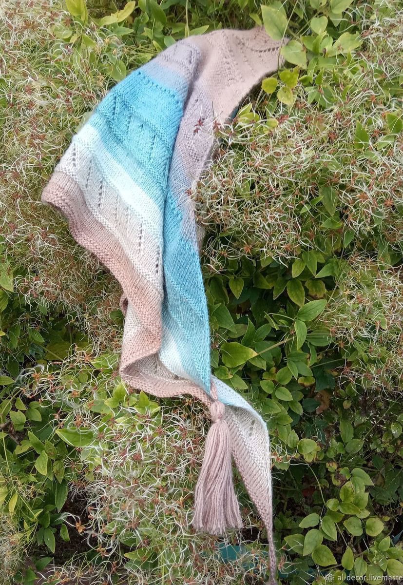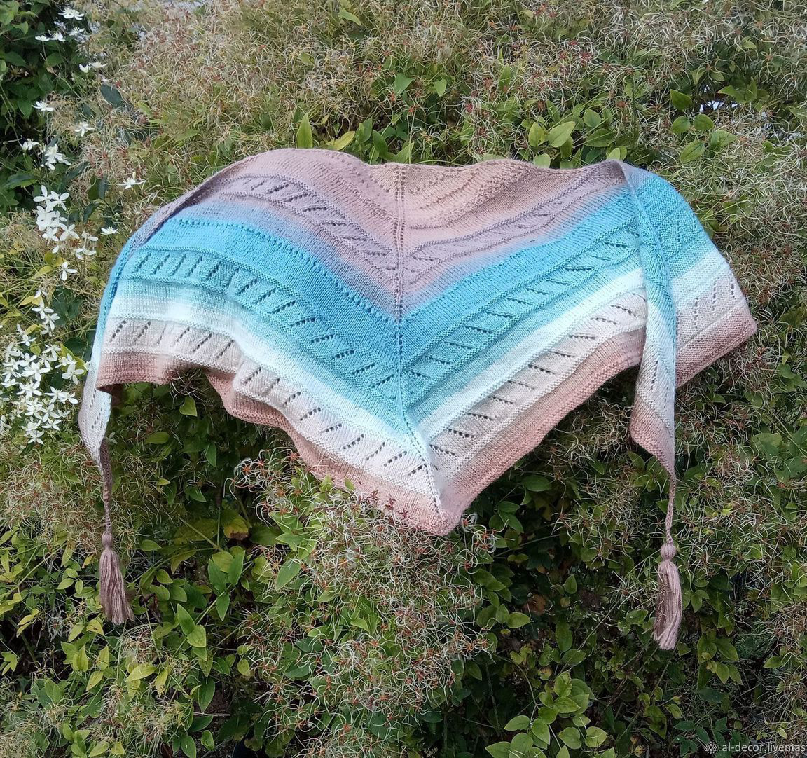 шаль, голубой, бактус, синий, бежевый, подарок на 8 марта, подарок, комбинированный, комплект вязаный, беж, подарок на новыйгод, шаль треугольная