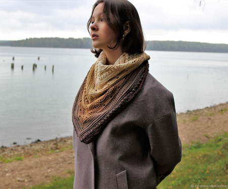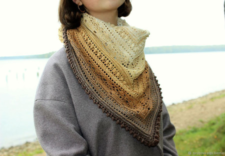 Бактус связан из турецкой пряжи хлопка с акрила. Он очень мягкий и приятный на ощупь, отлично драпируется. Благодаря плавному переходу цветов хорошо подойдёт для любой одежды.
