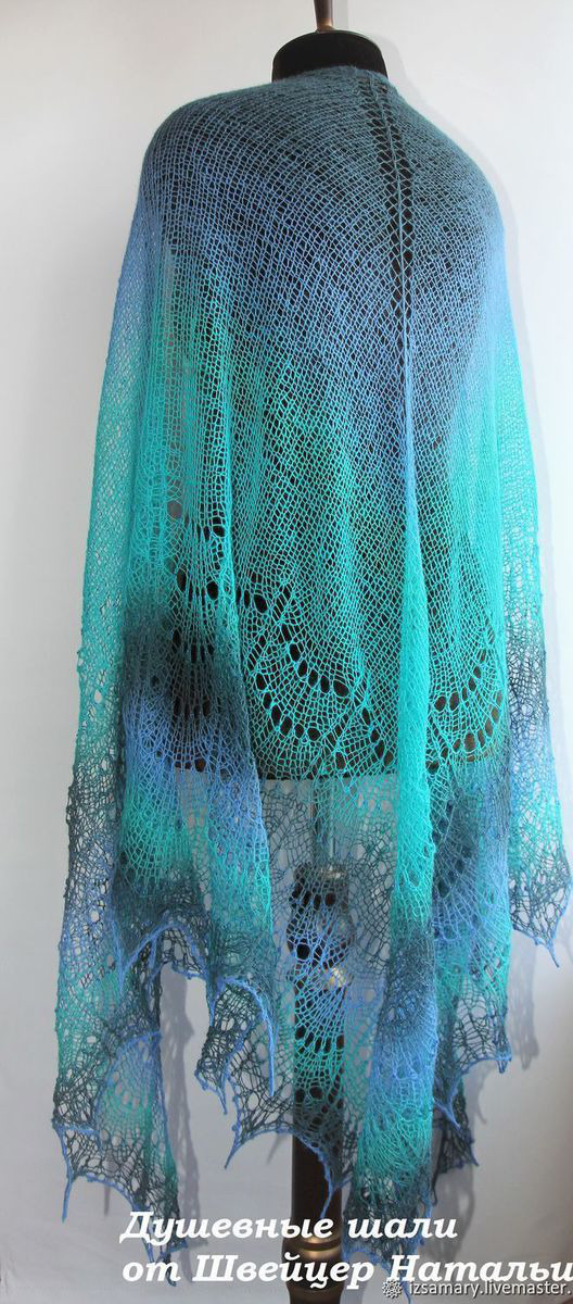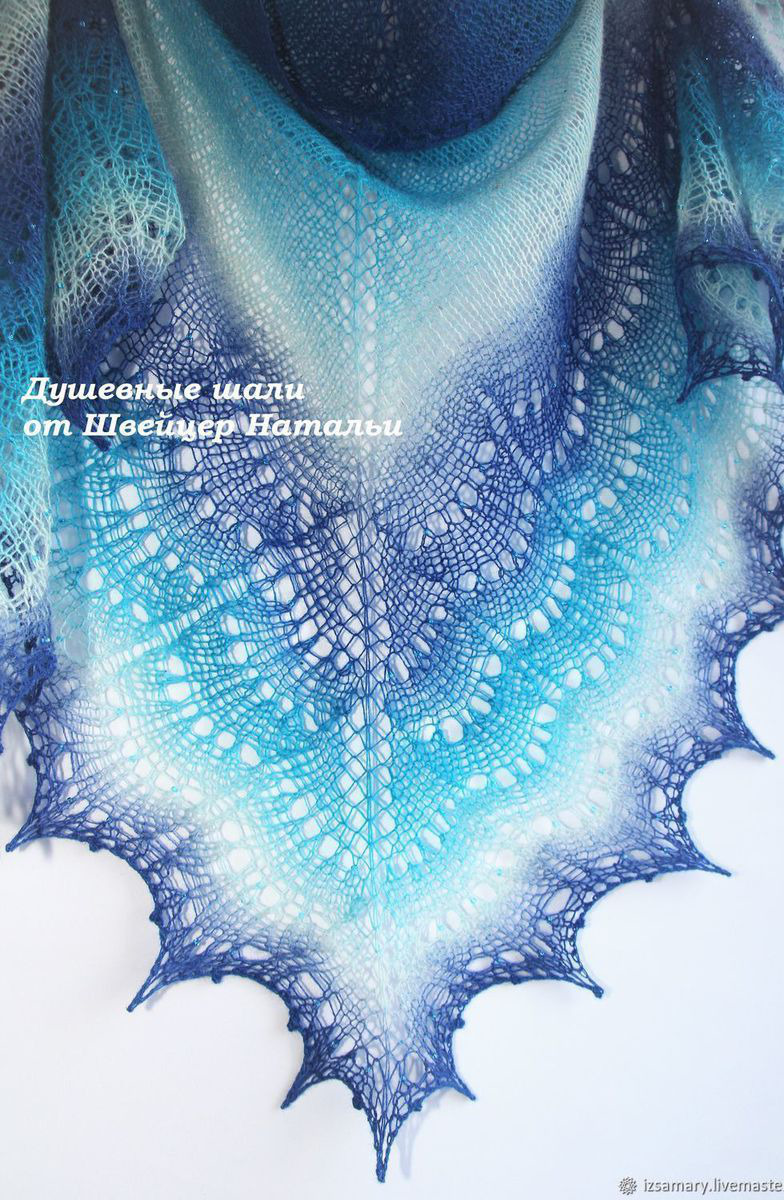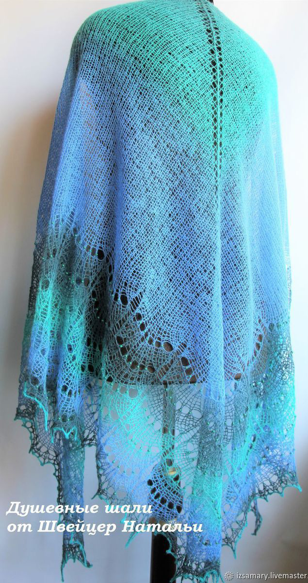 шаль, шаль спицами, подарок девушке, подарок женщине, шаль с бисером, морская волна, шаль из кауни, шаль из шерсти, шаль купить, подарок учителю, большая шаль, красивая шаль, нежная шаль, кауни модели, шаль-паутинка, голубая шаль, подарок учительнице, роскошный подарок, душевные шали, от швейцер натальи