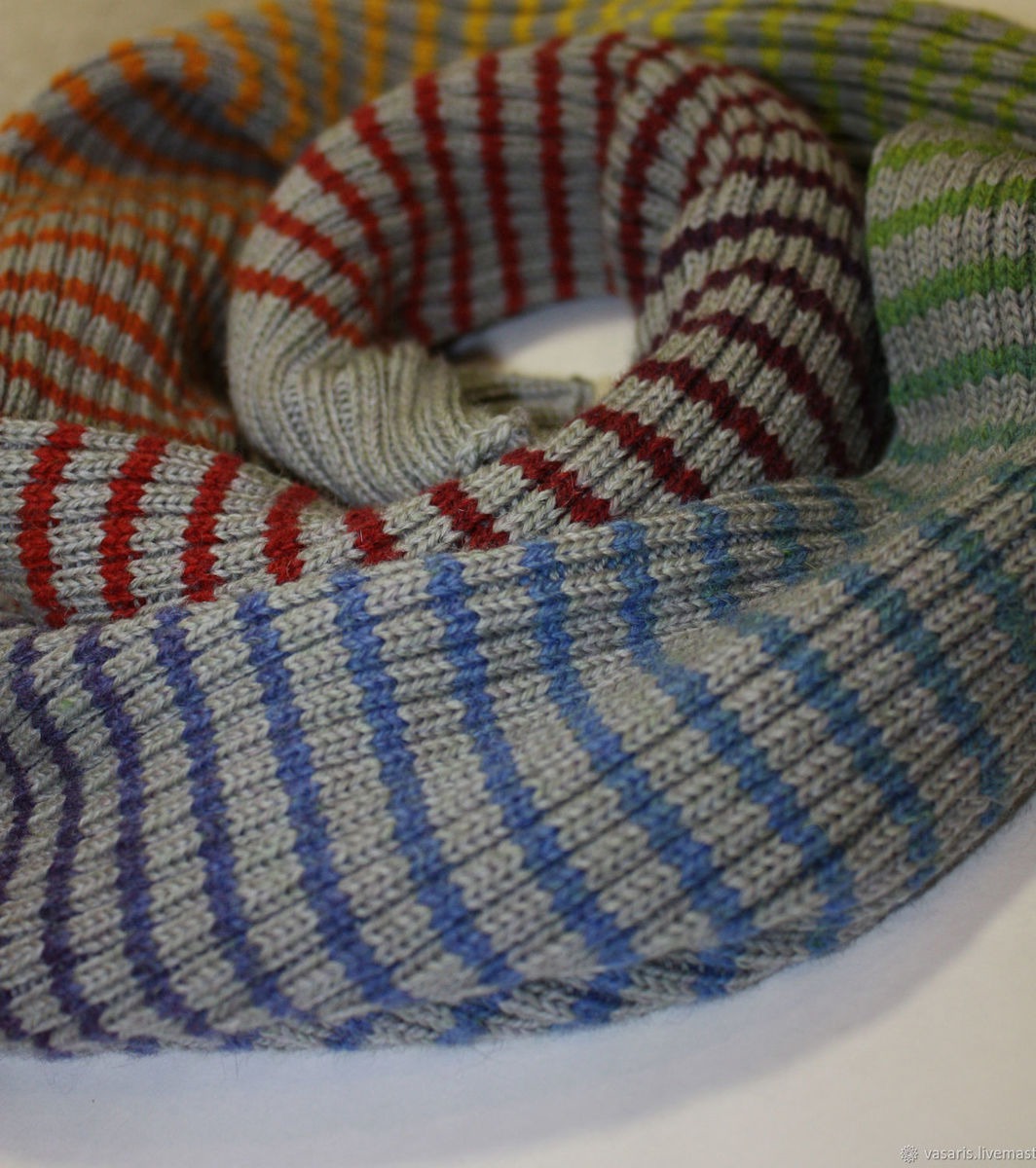 шерсть, радуга, шарф, шарф женский, шарф вязаный, теплый шарф, комбинированный