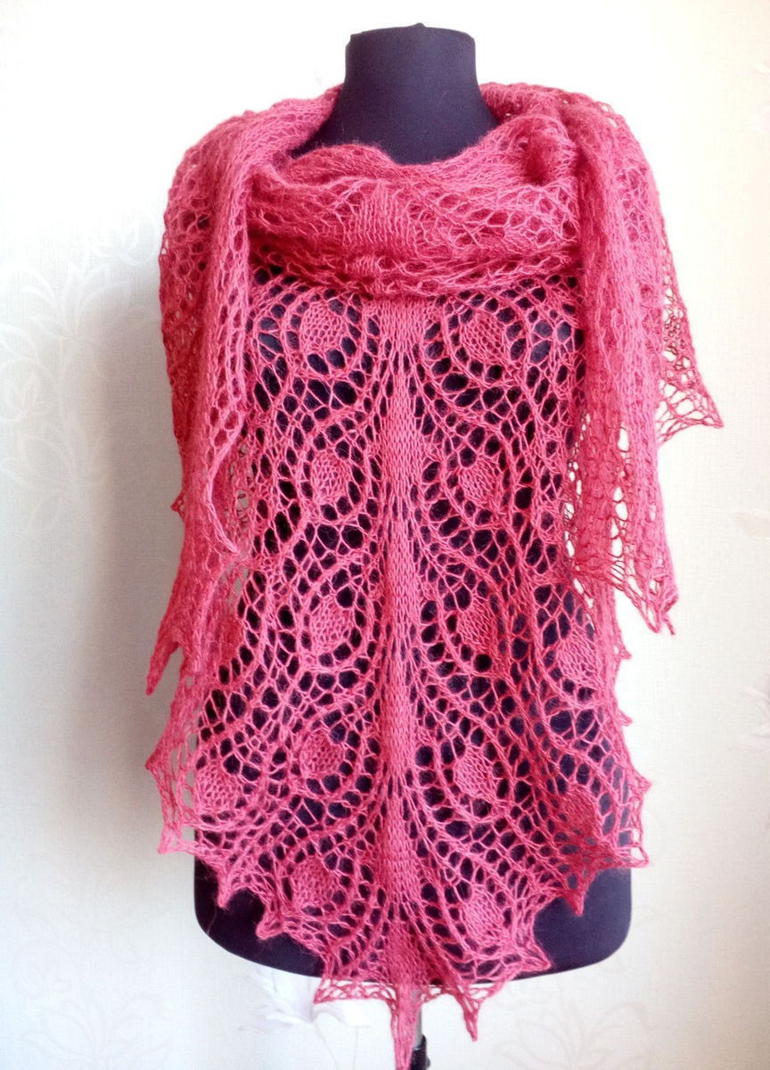 шелк, коралловый, купить шаль, теплая шаль, теплый платок, купить платок, беби альпака