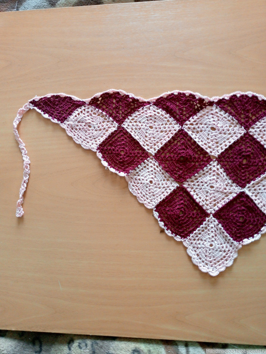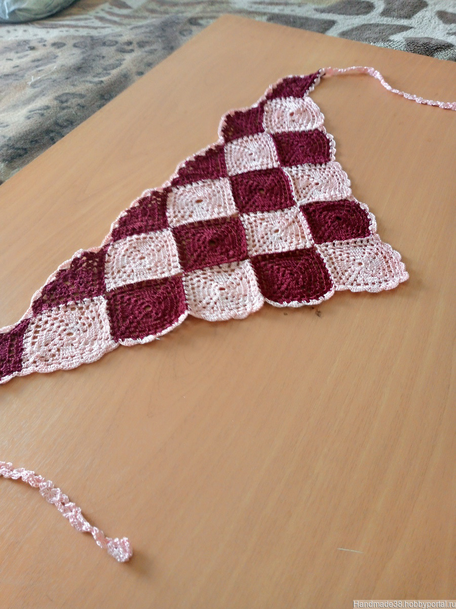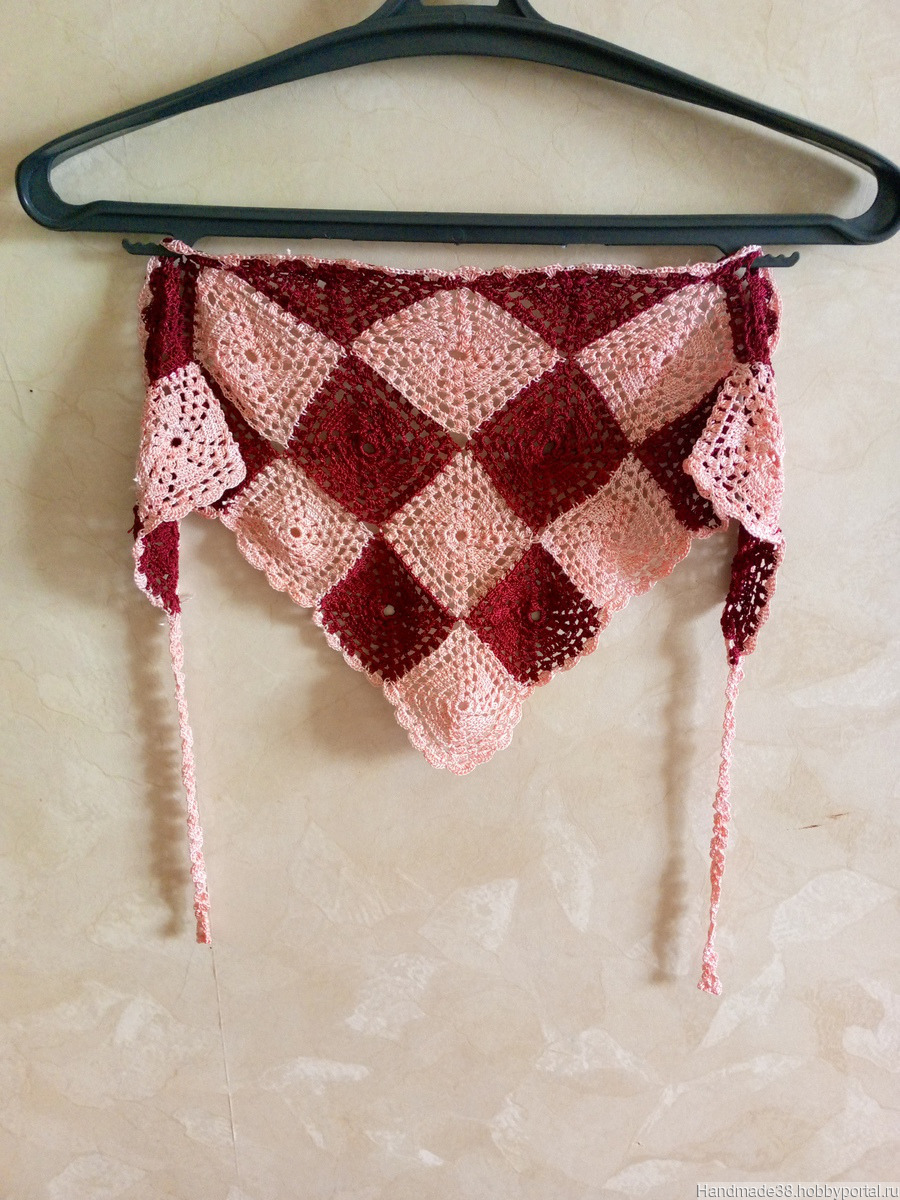 Шейный платок(косынка-бактус) связан из прижи Yarnart tilip(искусственный шелк). Размер 70х32 см., завязки 25 см.