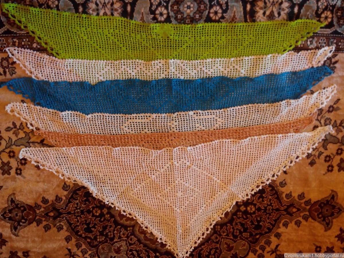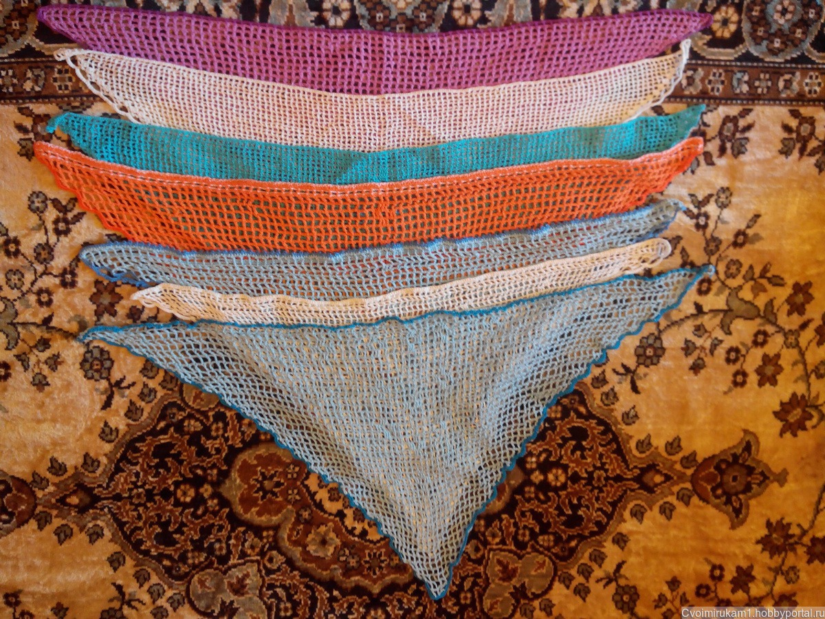 Косынка размером 70 х 35 см Разная цветовая гамма и размеры. Вязана крючком.