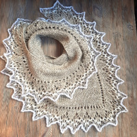 Минишаль асимметричной формы и з тонкой шерстяной пряжи кауни. Уникальная форма позволяет красиво драпировать на шее. Можно зацепить брошью, а можно выпустить один край.
