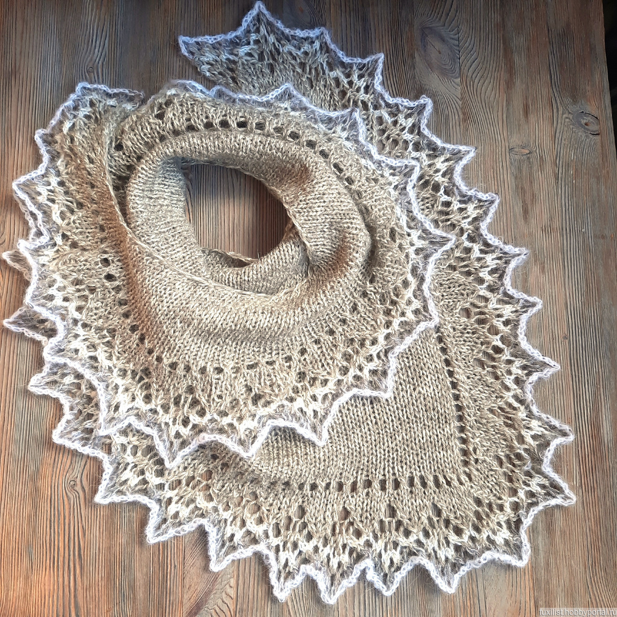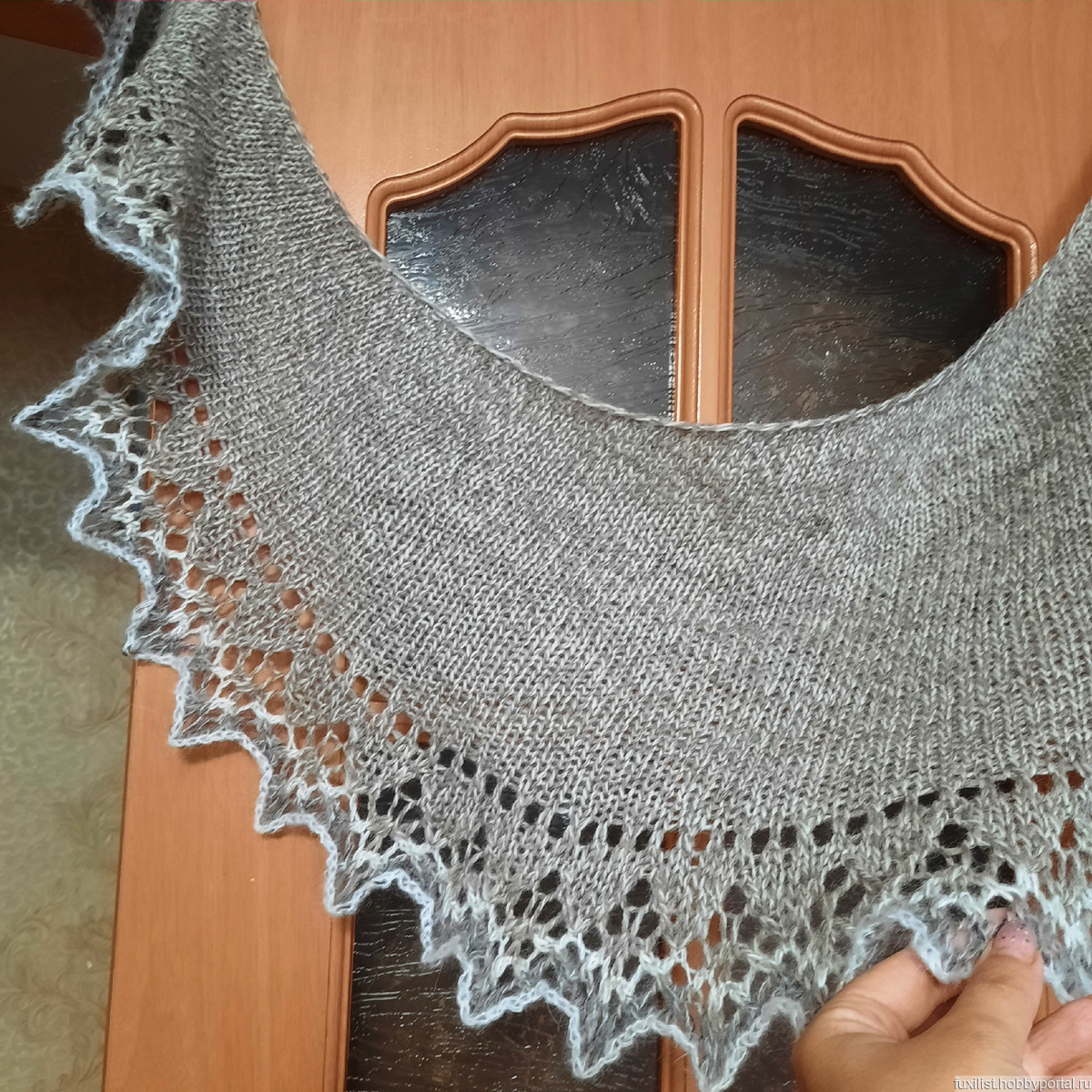 Связана вручную на спицах из импортной пряжи 100% шерсть + немного пуха на кайме.