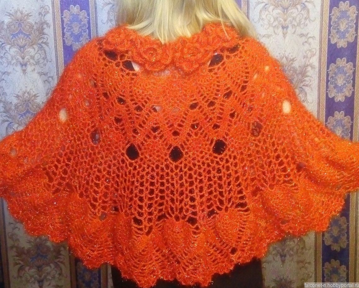 Высота от горловины до низа 75 см, длина накидки по низу 2.6 м.