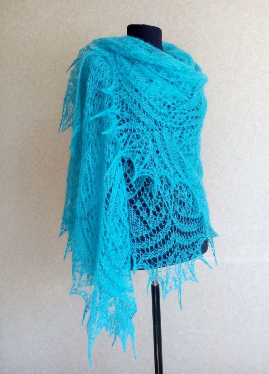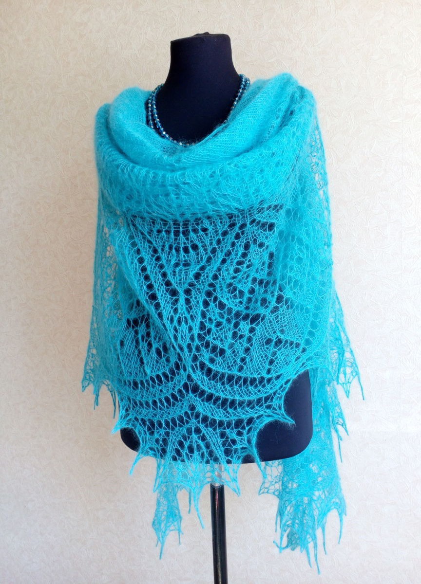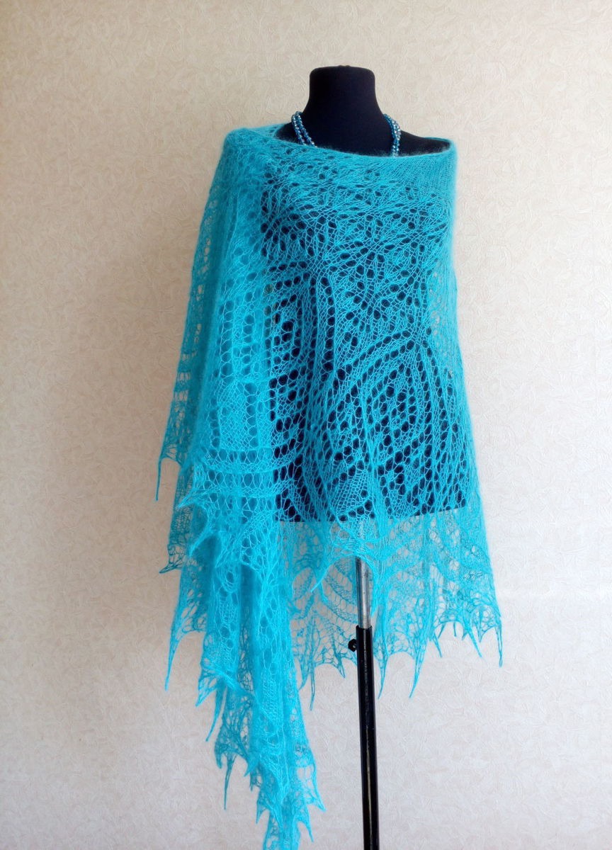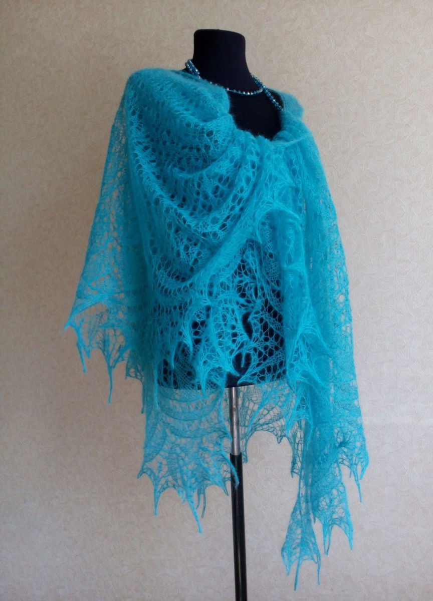 бирюзовый, ручная работа купить, воздушная шаль, заказать накидку, купить уютную шаль, кидмохер на шелке, итальянский кидмохер, купить пелерину