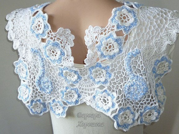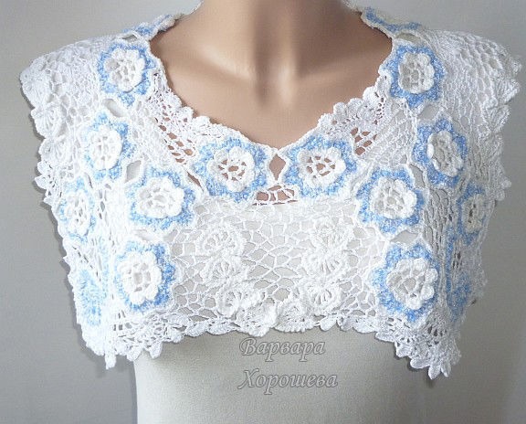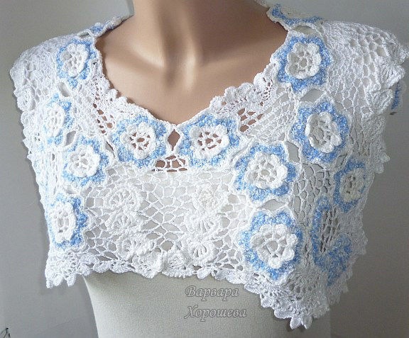 Накидка связана крючком в технике наборного кружева.
