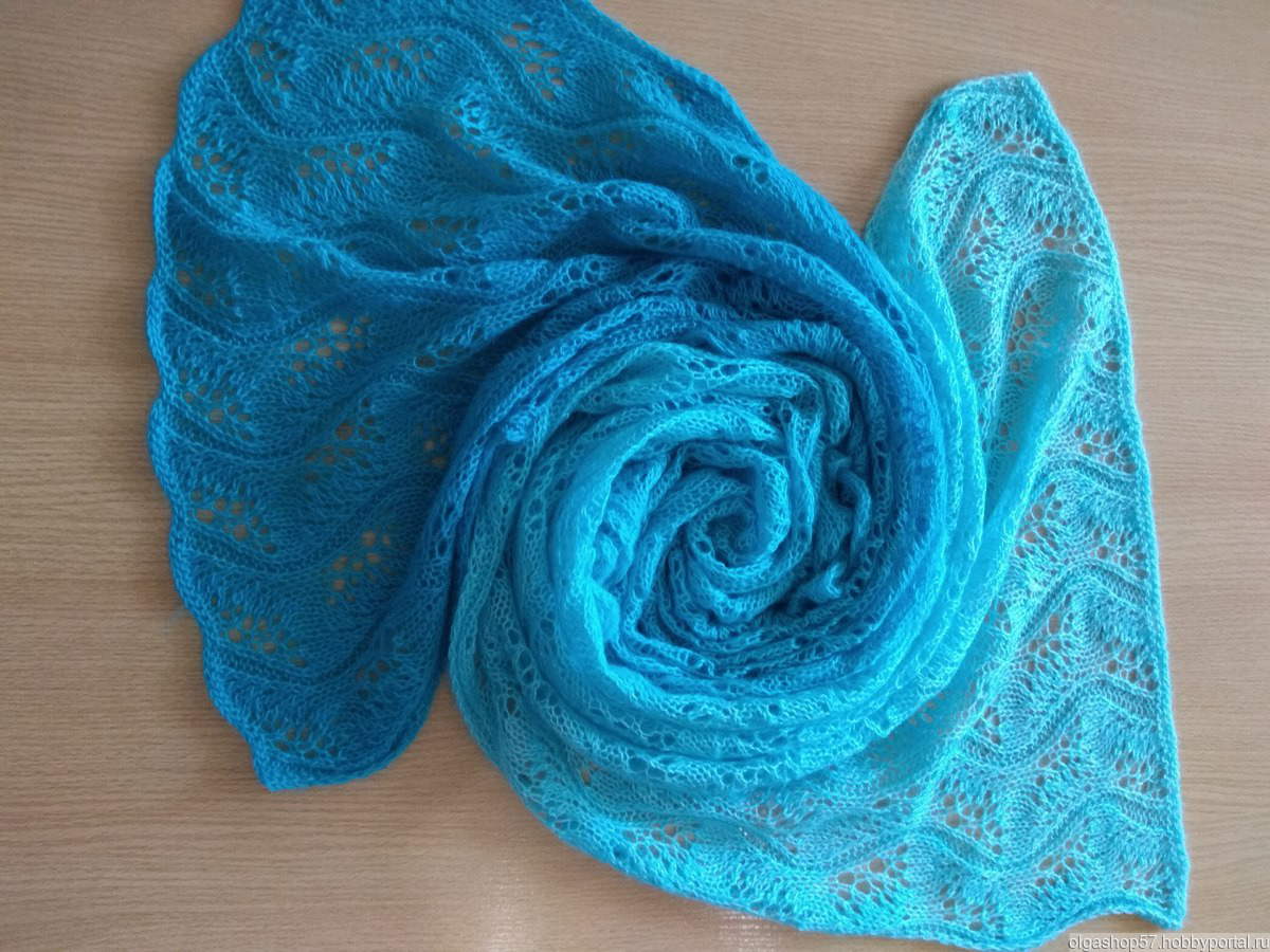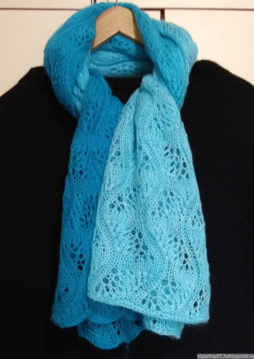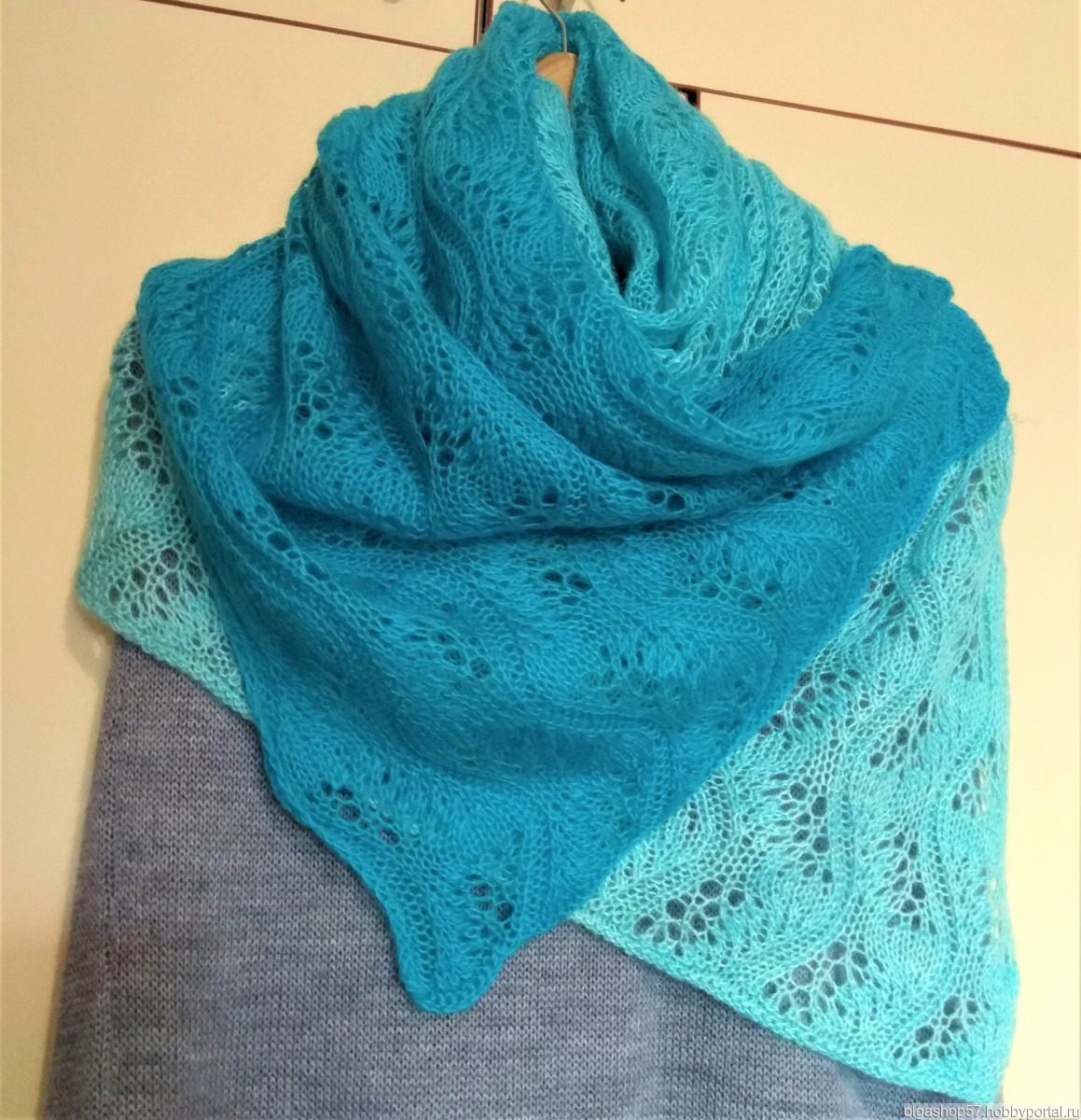 Шарф-палантин из пряжи с потрясающим градиентом - от небесно-голубого до насыщенного бирюзового. Нежный, тонкий, легкий, теплый. Он достаточно широкий, как палантин, но также легко драпируется и прекрасно смотрится в намотке, как шарф.