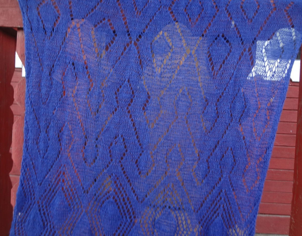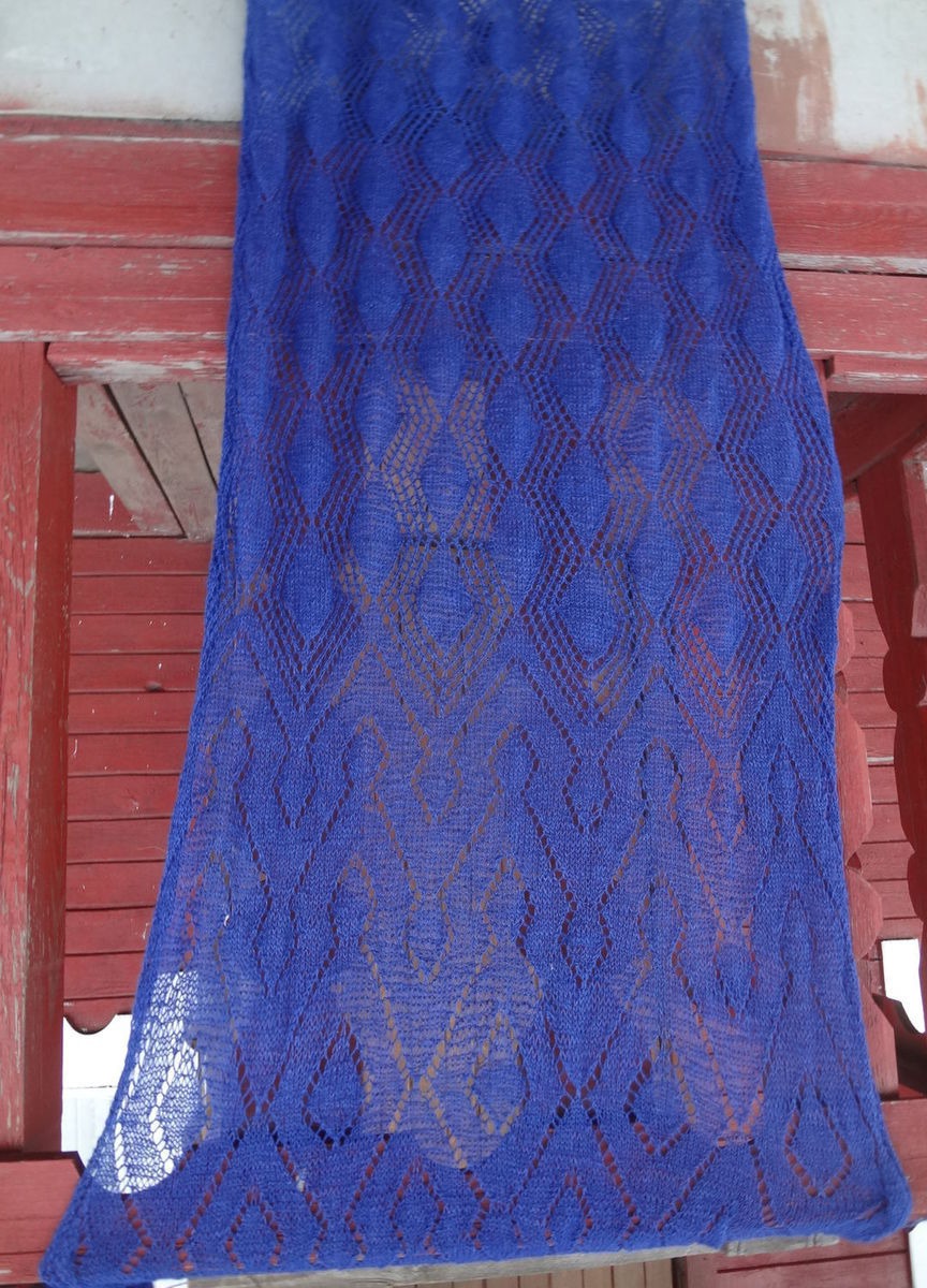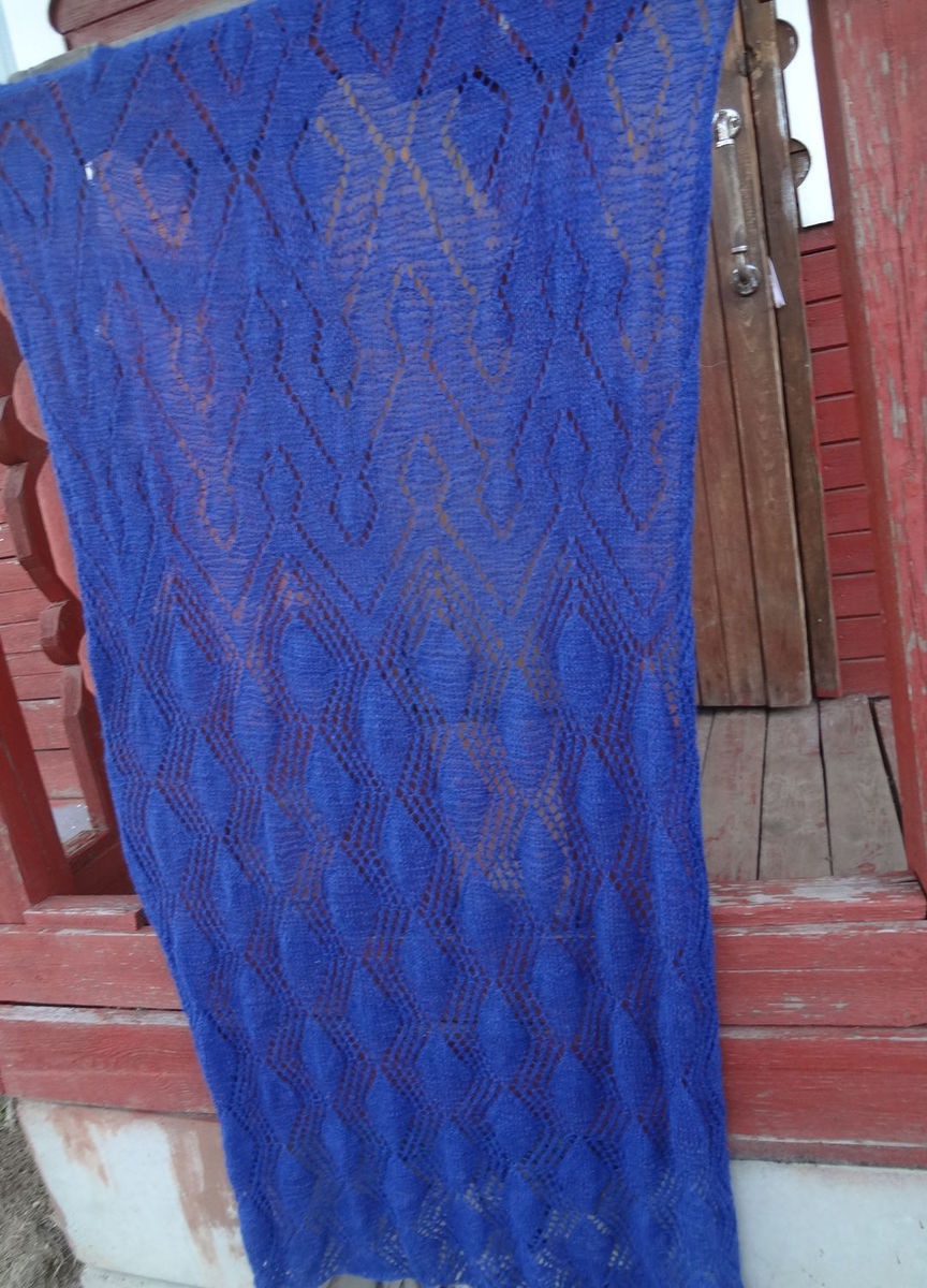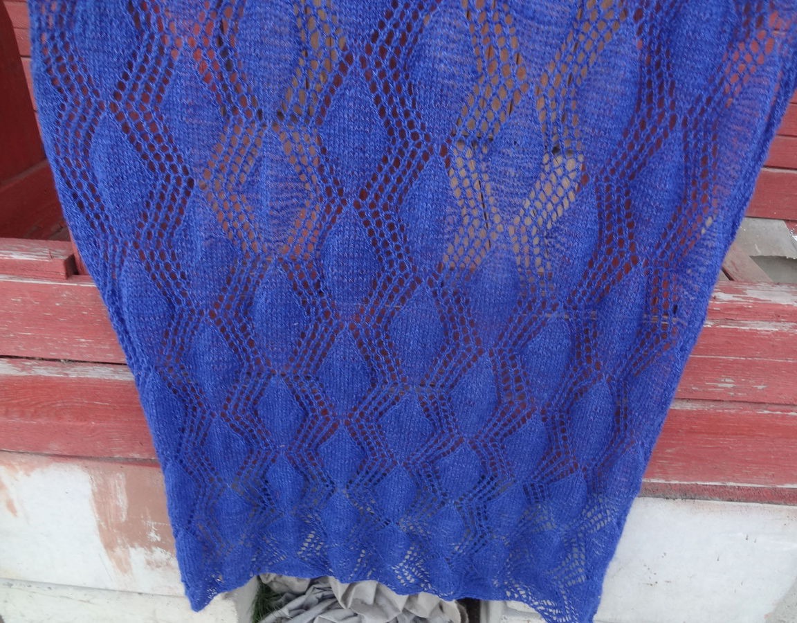 палантин спицами, однотонный, палантин вязаный, темно-синий, палантин шелковый