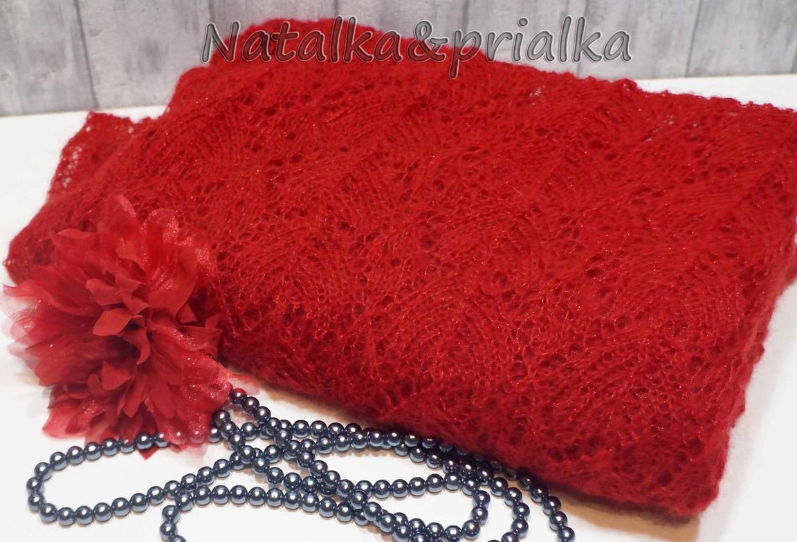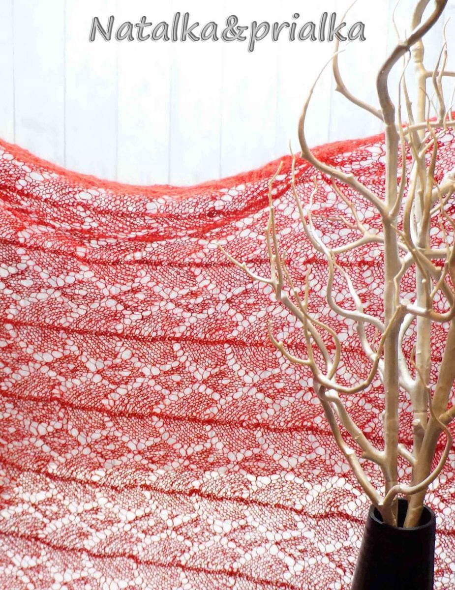 палантин, палантин спицами, красный, ручная работа, палантин ажурный, палантин ручной работы, красный палантин, вязаный палантин, палантин красивый, наталана, палантин красного цвета, палантин красный