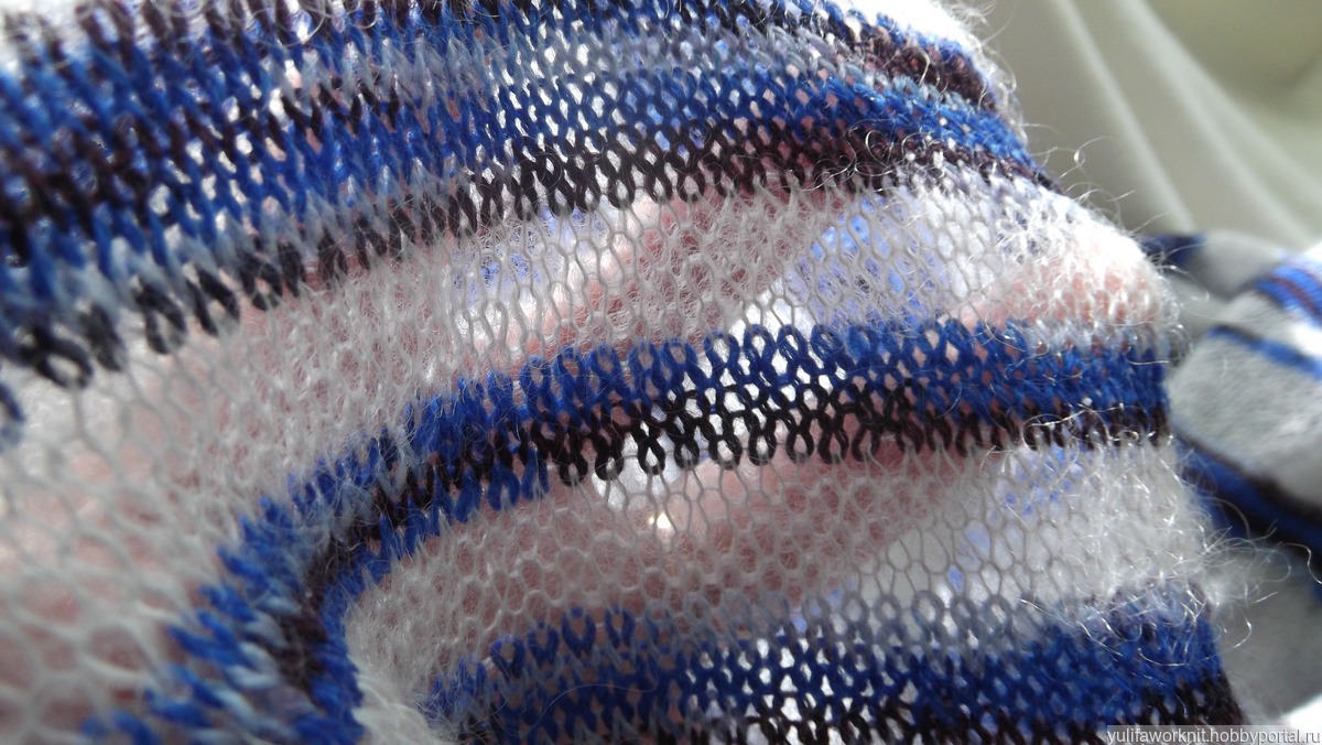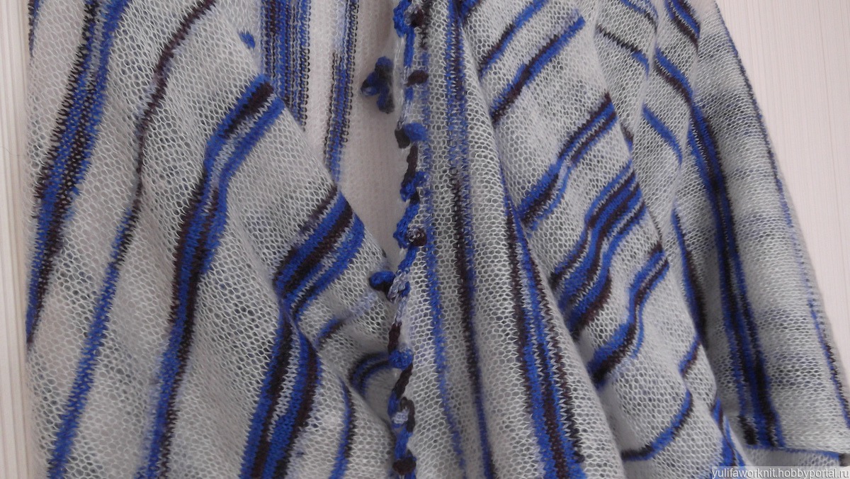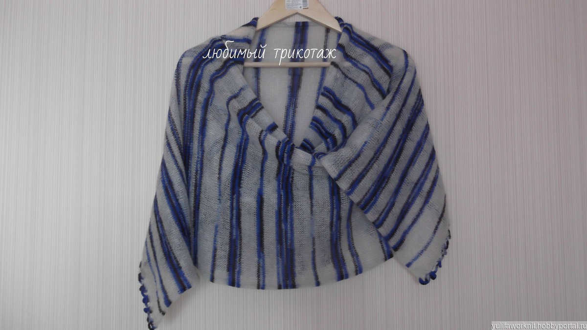 Палантин. Связан полосками тончайшего серого кид мохера в сочетании с синими оттенками шерстью миссони.