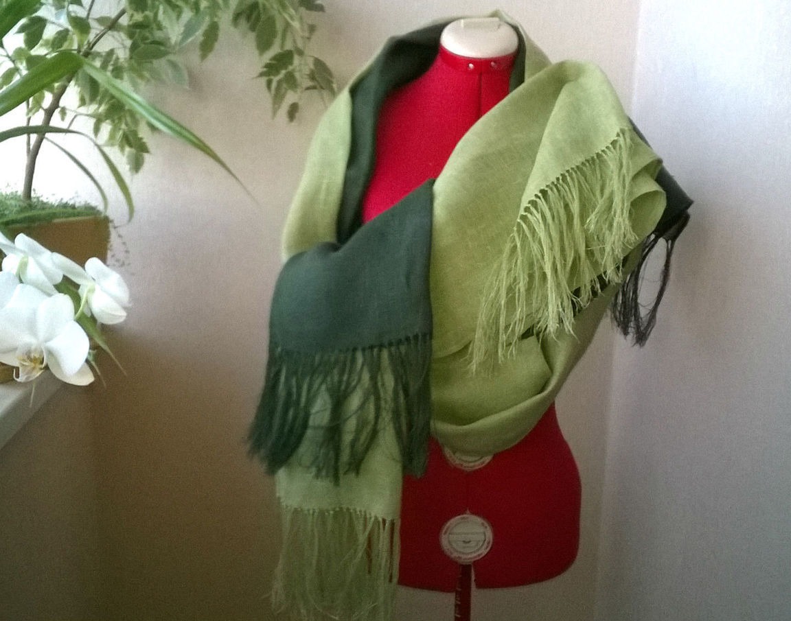зелёный, палантин, серый, белый, лето, бохо-стиль, коричневый, подарок на любой случай, терракот, палантин ручной работы, бохо, экостиль, легкий шарф, эко, летний палантин, льняной палантин, бохо палантин, с кистями, present, for women