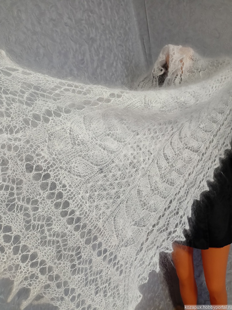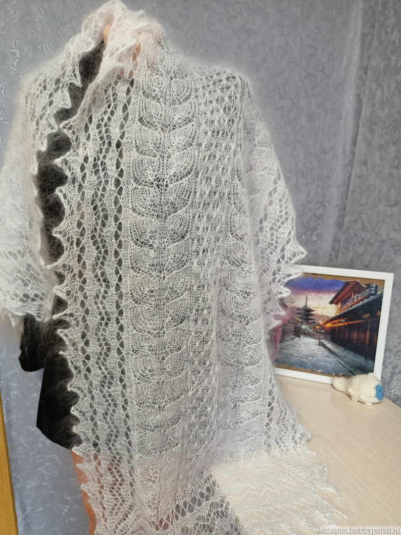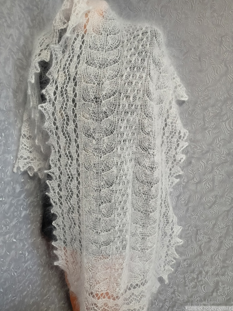 палантин, белый, палантин ажурный, палантин ручной работы, паутинка, палантин-паутинка, палантин пуховый