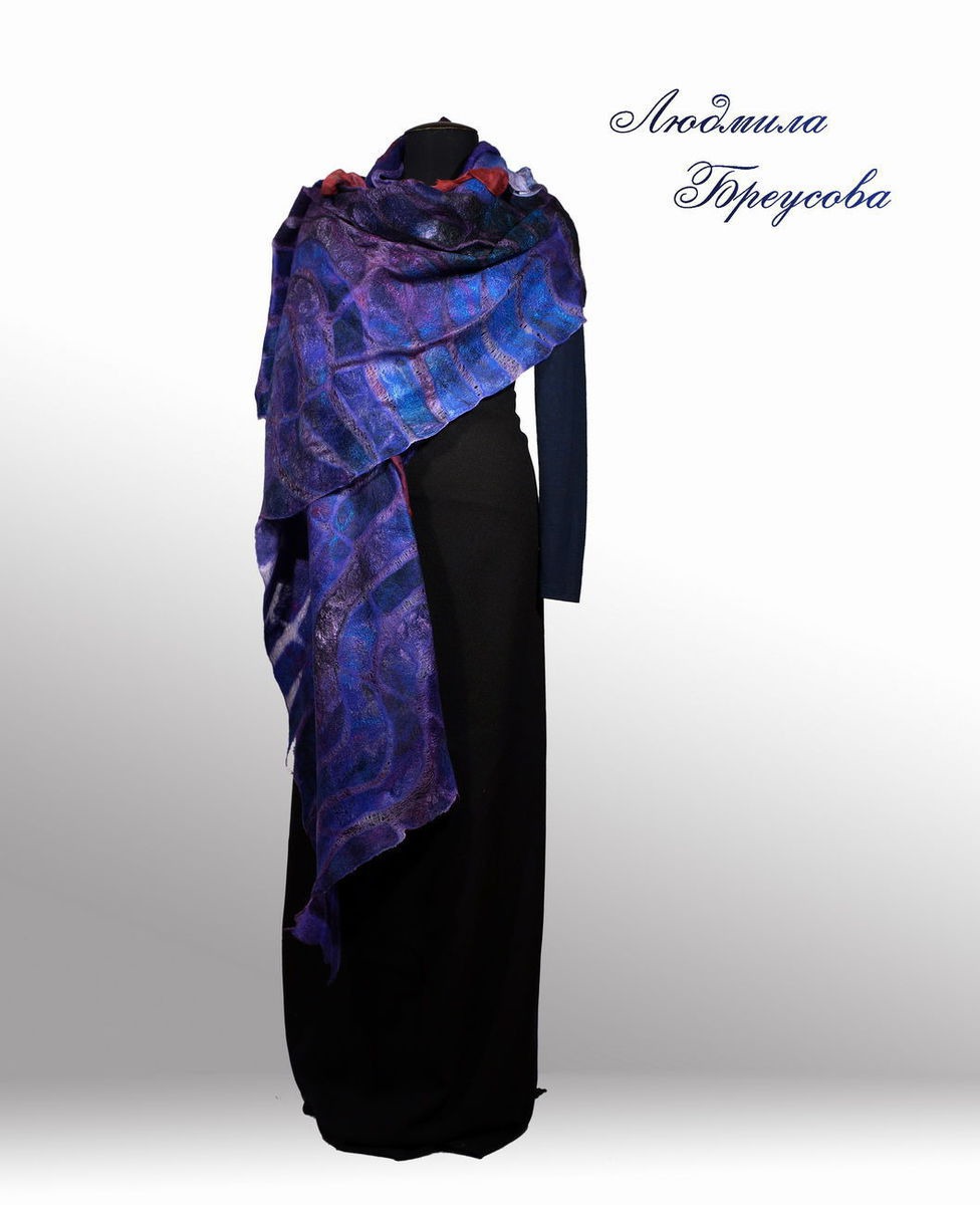 палантин, подарок на день рождения, подарок женщине, подарок на 8 марта, авторский палантин, пофиолетовый палантин