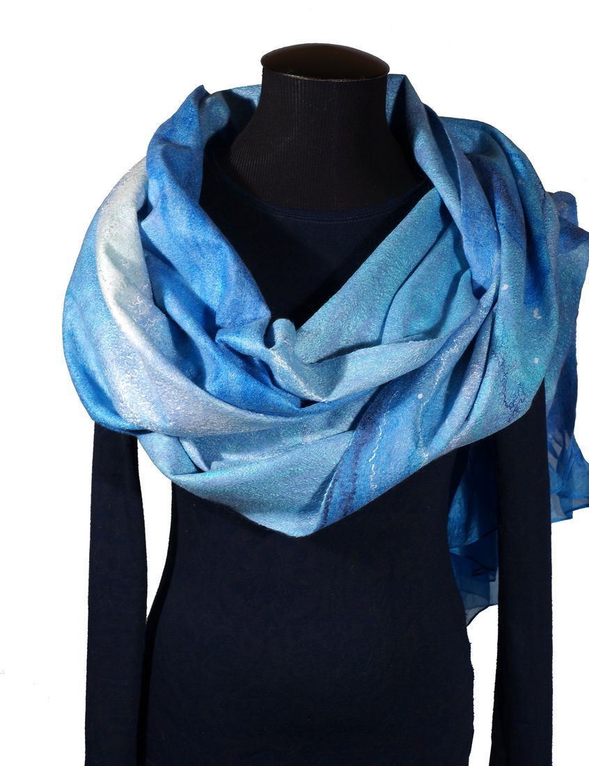 голубой, подарок на день рождения, подарок на 8 марта, палантин ручной работы