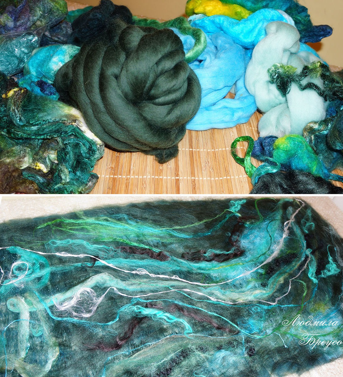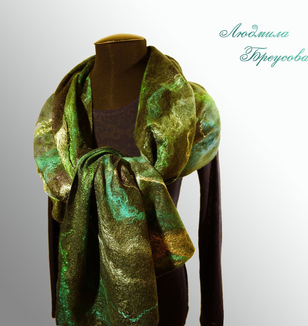 Этот валяный палантин идеально подойдет любителям зеленого и бирюзового цвета!