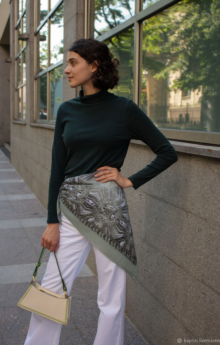 Платок «День дождя» из авторской лимитированной коллекции «Волшебные мечты». Авторский принт.