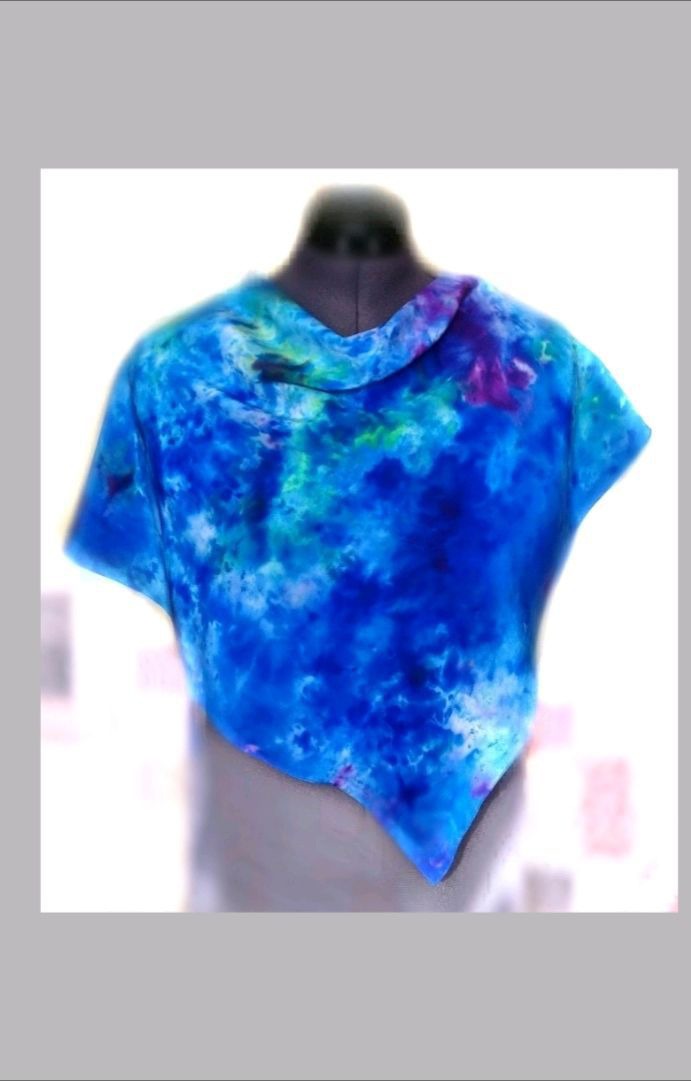 ЦВЕТ платка ЯРКИЙ СИНИЙ ЦИАН с небольшими включениями светло-зелёного и ярко-фиолетового.