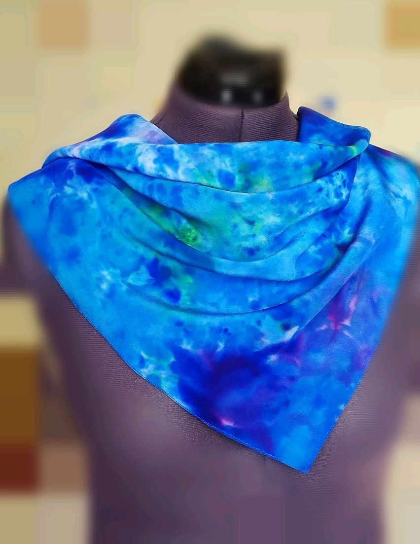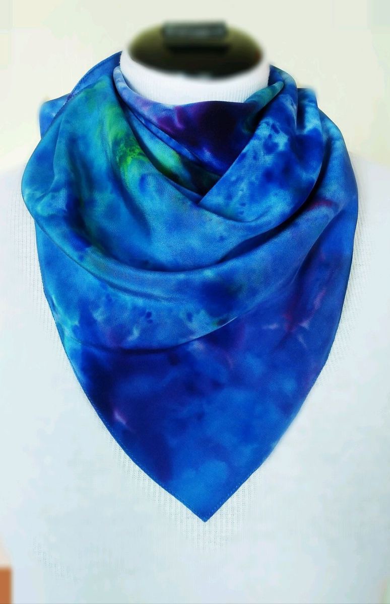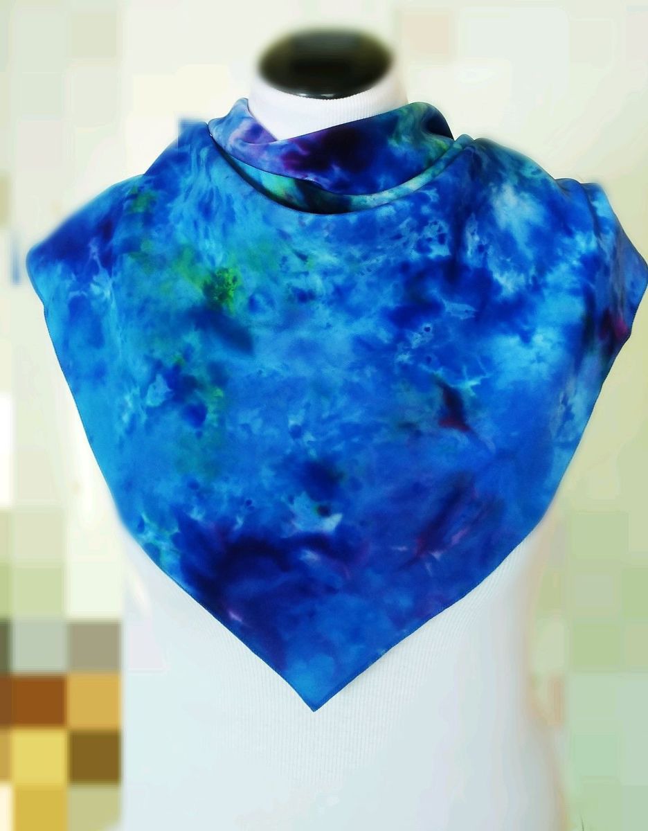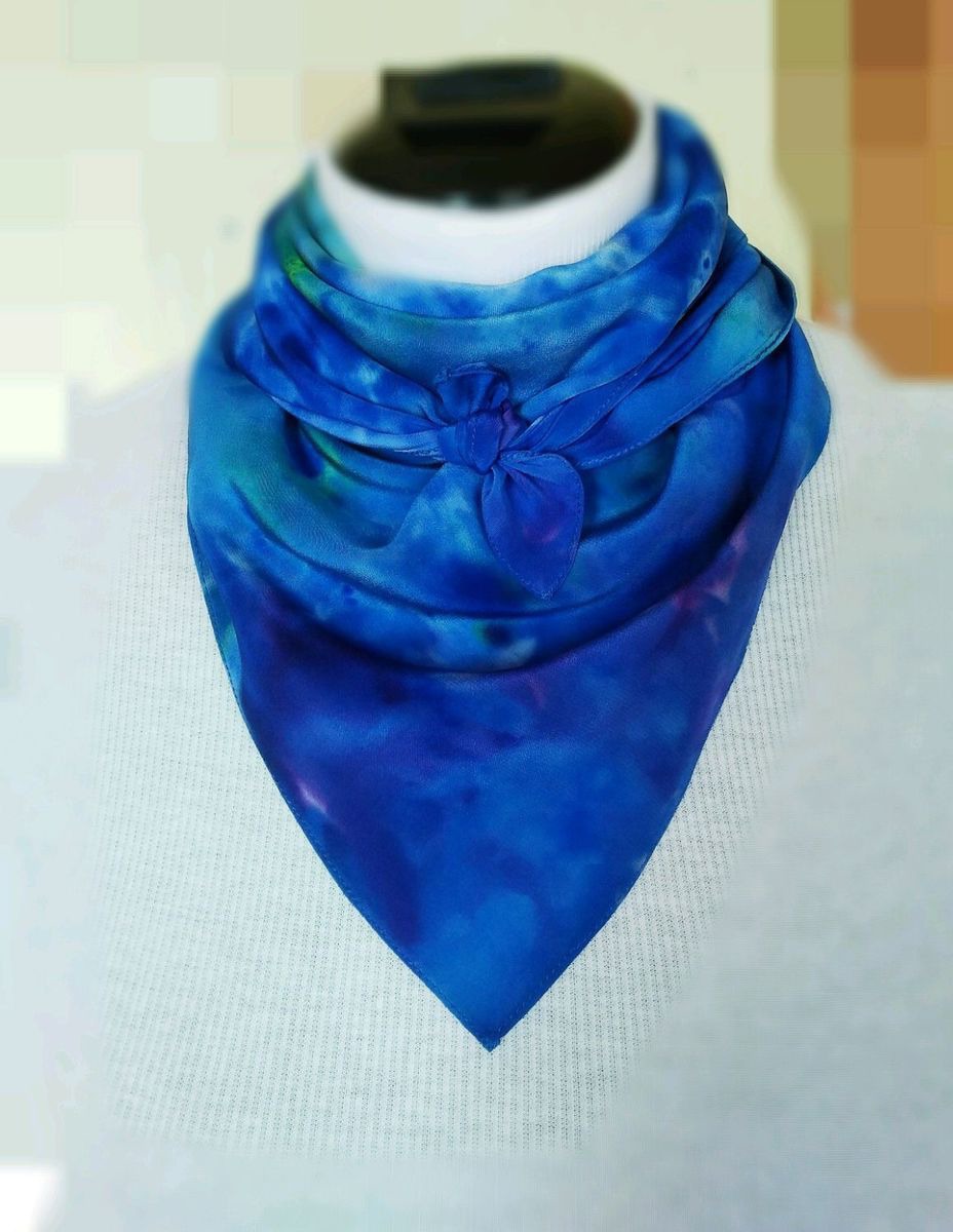 платок на шею, синий платок, платок шелковый купить, платок шелковый батик, платок из шелка, Платок синий шёлковый