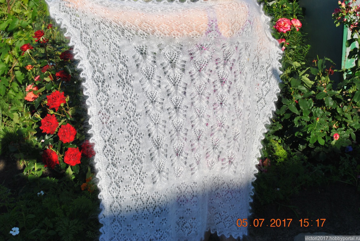 Белая пуховая ажурная шаль,паутинка ручной работы из чесанного пуха, с ажурными зубчиками по краям.120х120Мягкая, теплая,легкая,нежная, пушистая. Цена 2500руб.Больше информации о товаре вы сможете получить на моей странице в одноклассниках Ирина. Пуховые изделия от Ирины