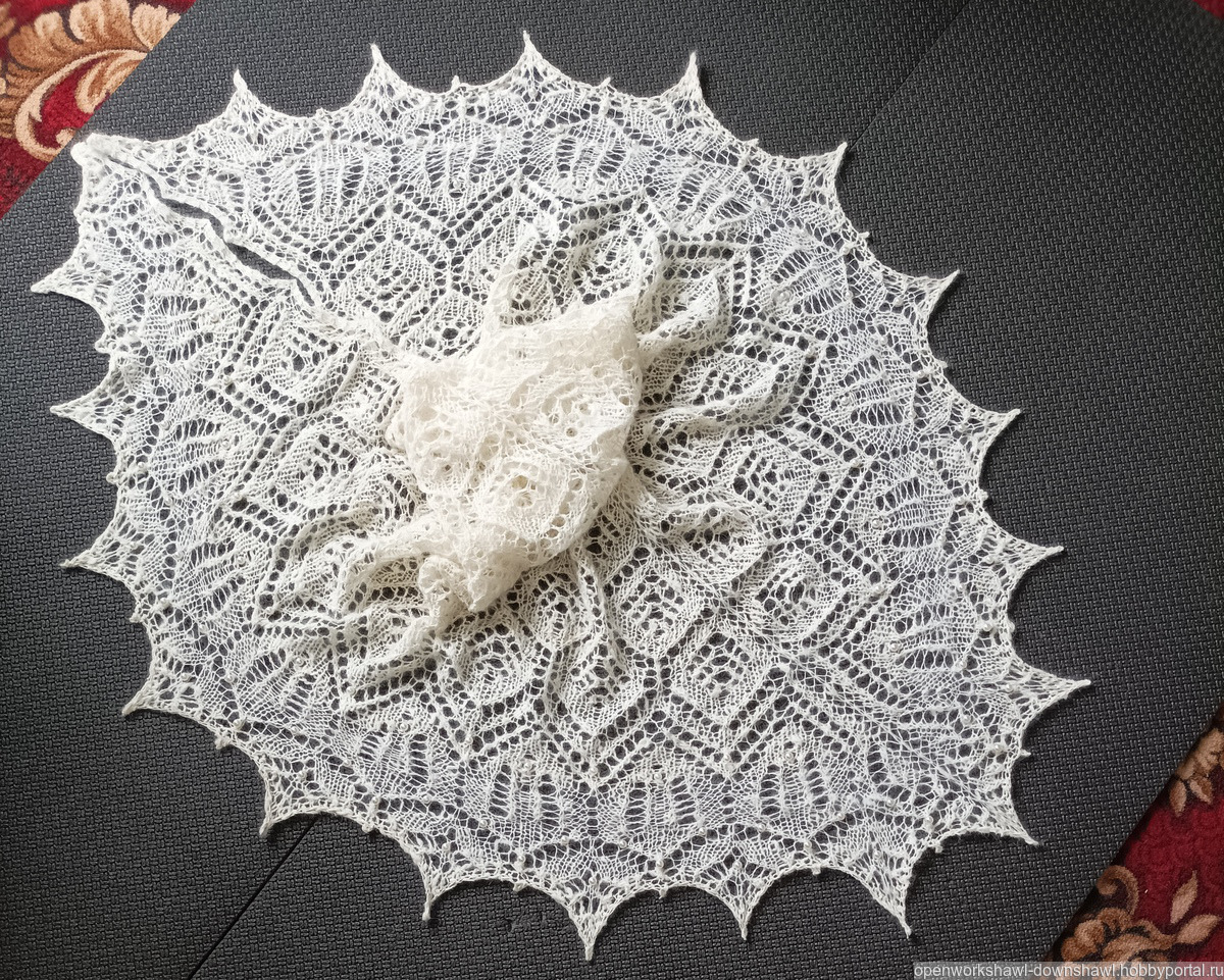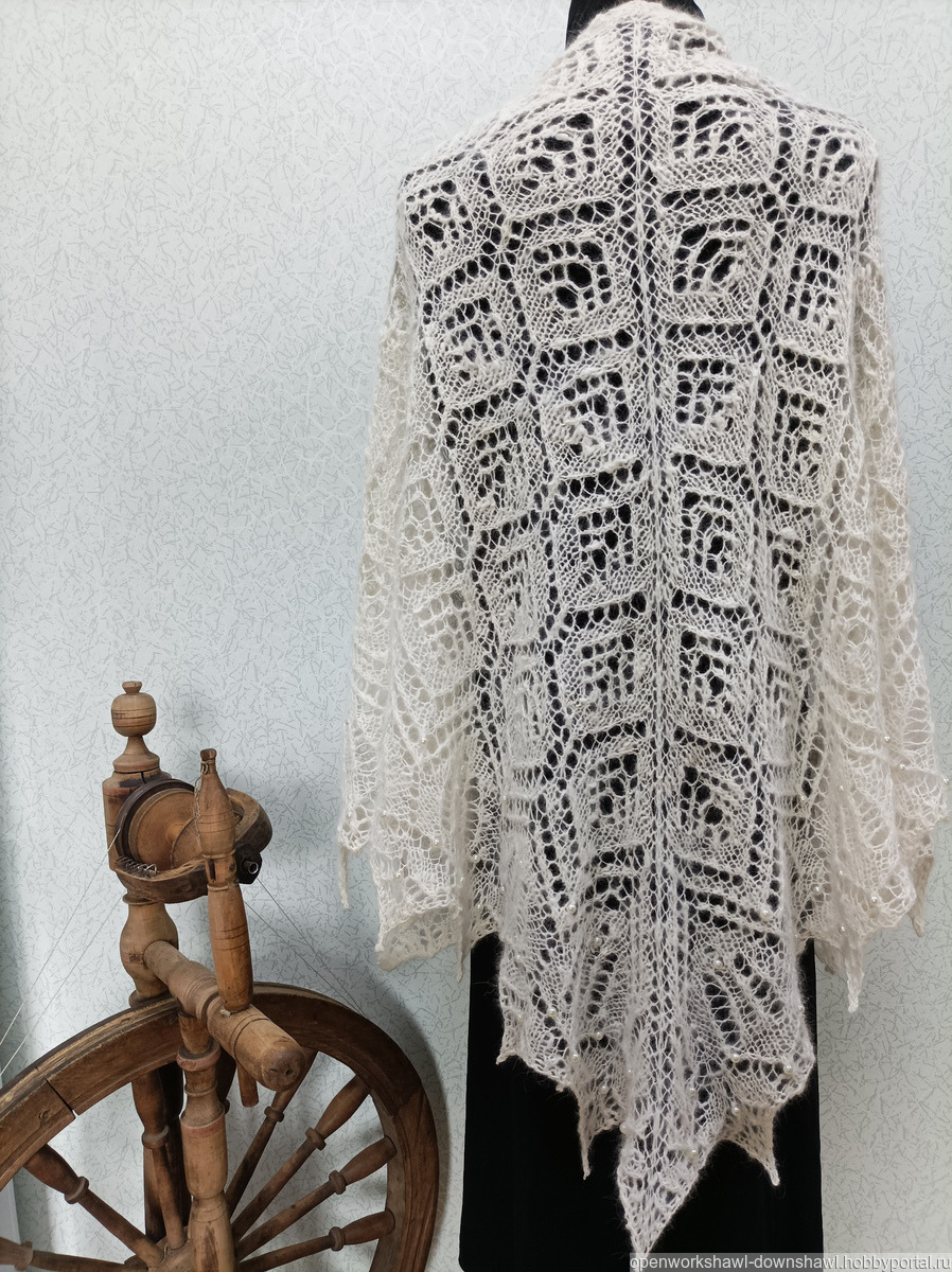 Пряжа для шали изготовлена самостоятельно из пуха белоснежного самоеда.