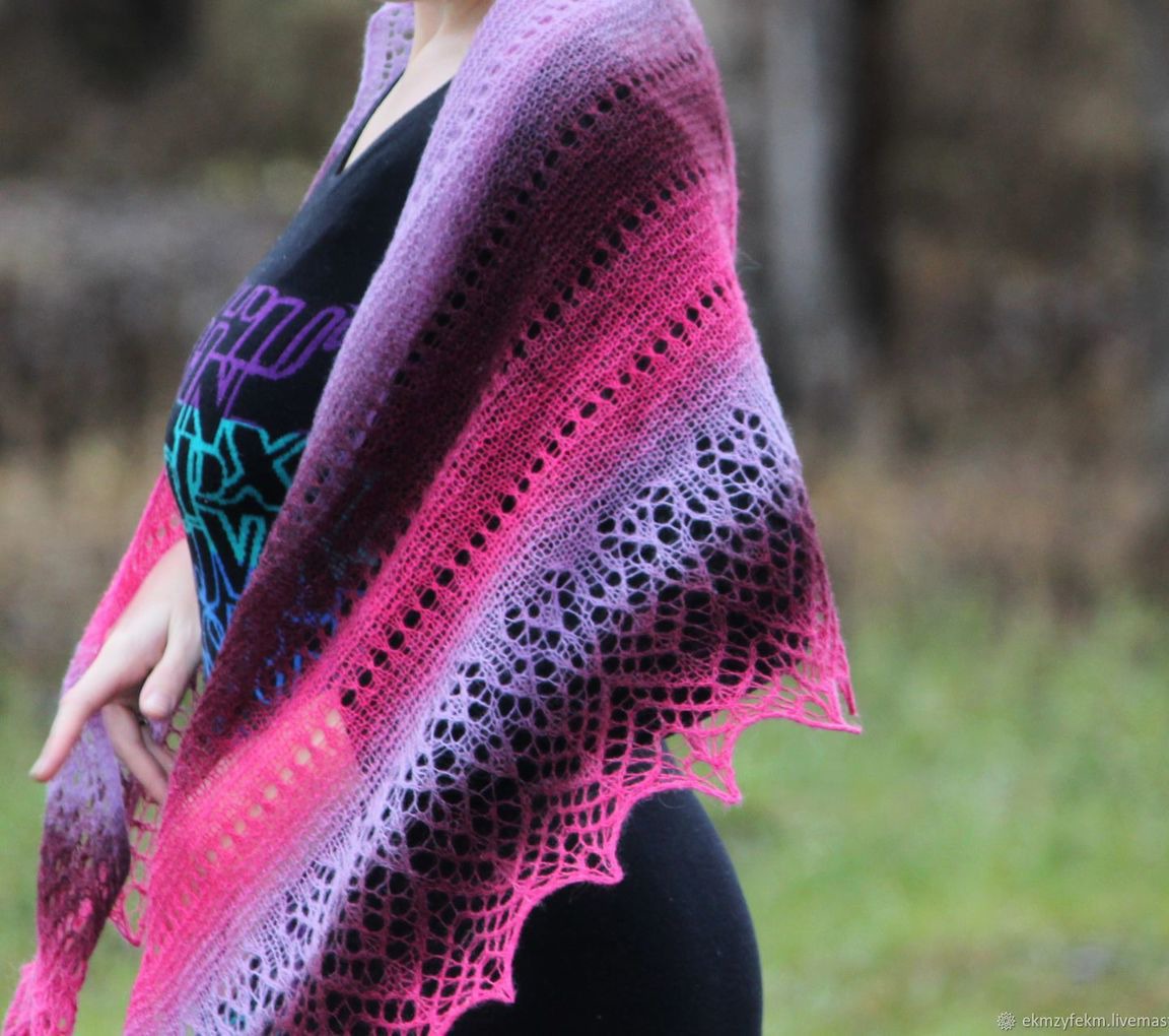 Шаль из натуральной шерсти с эффектными цветовыми переходами. Легкая, теплая, яркая! Размеры, материалы могут быть любыми по желанию.