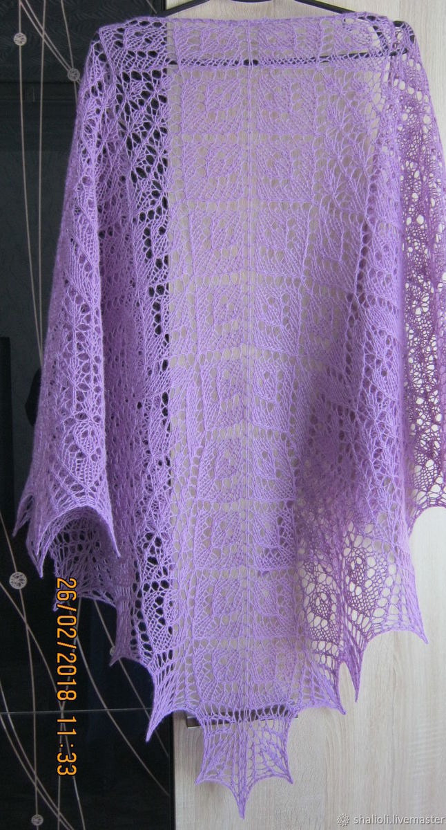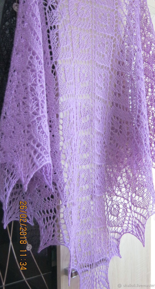 шаль спицами, подарок женщине, шаль ажурная, шаль в подарок, шаль ручная работа, шаль вязаная, ажурная шаль, сиреневый, шаль ручной работы, шаль из шерсти, ажурный узор, стильный подарок