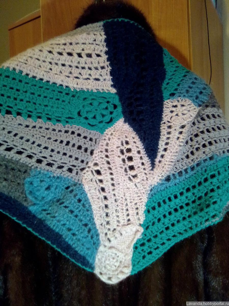Шаль в стиле фриформ из натуральной шерстяной пряжи, альпаки и королевского мохера.