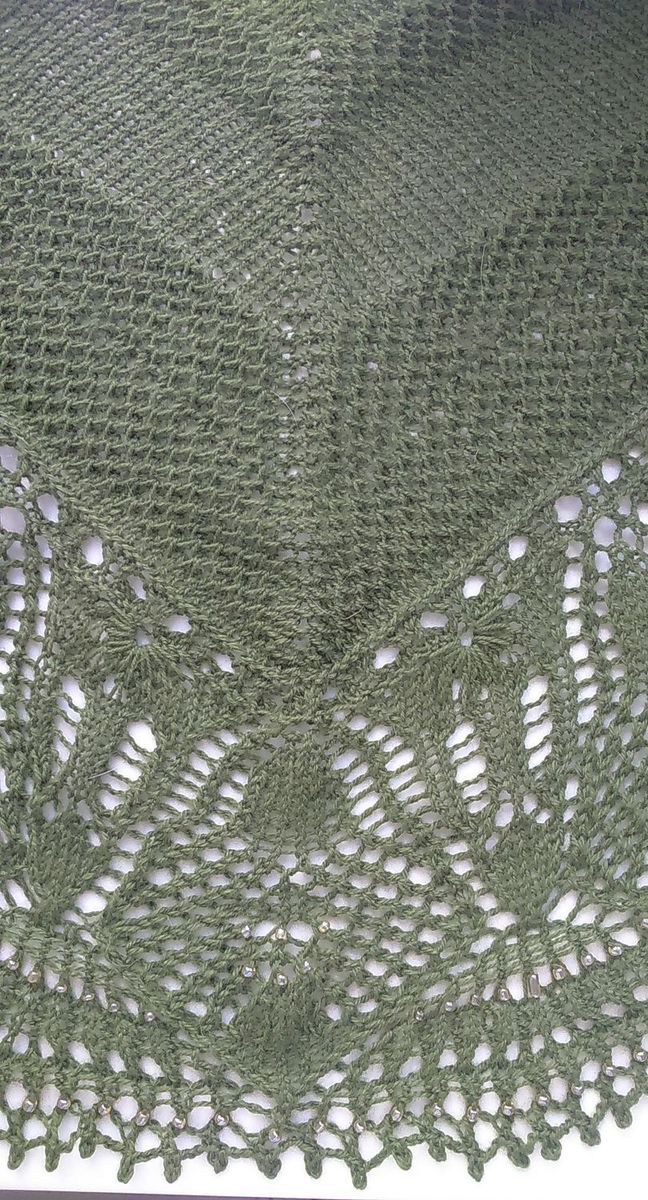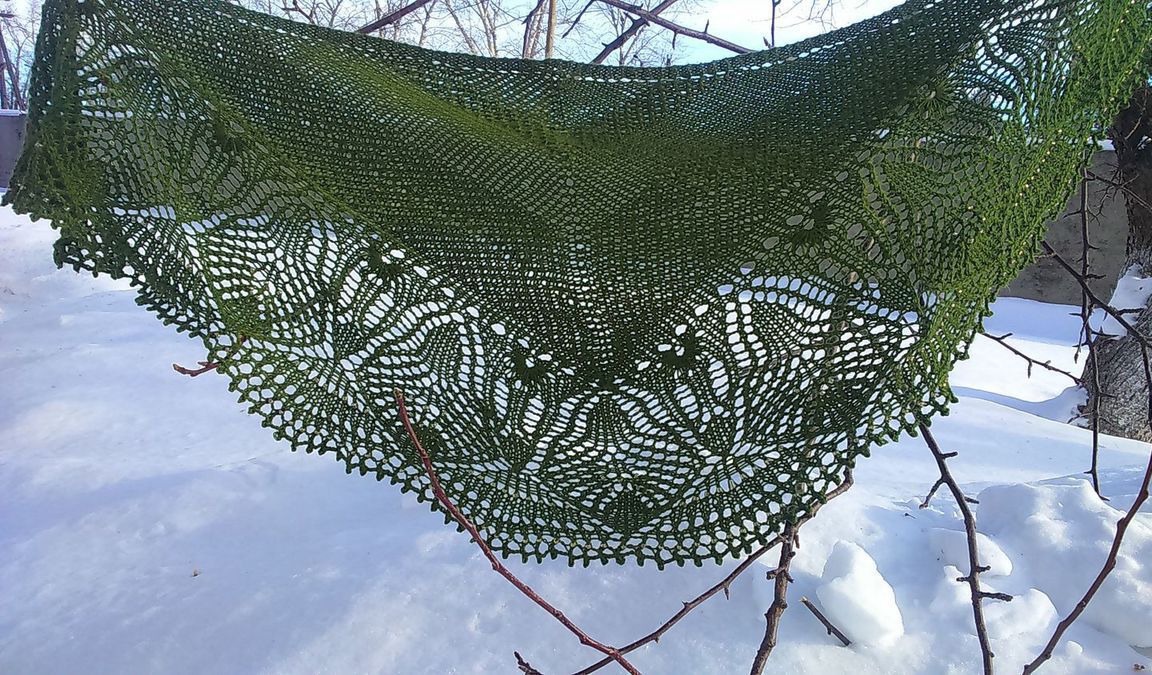 шаль спицами, ручная работа, рисунок, подарок девушке, подарок на любой случай, шаль ручной работы, темно-зеленый