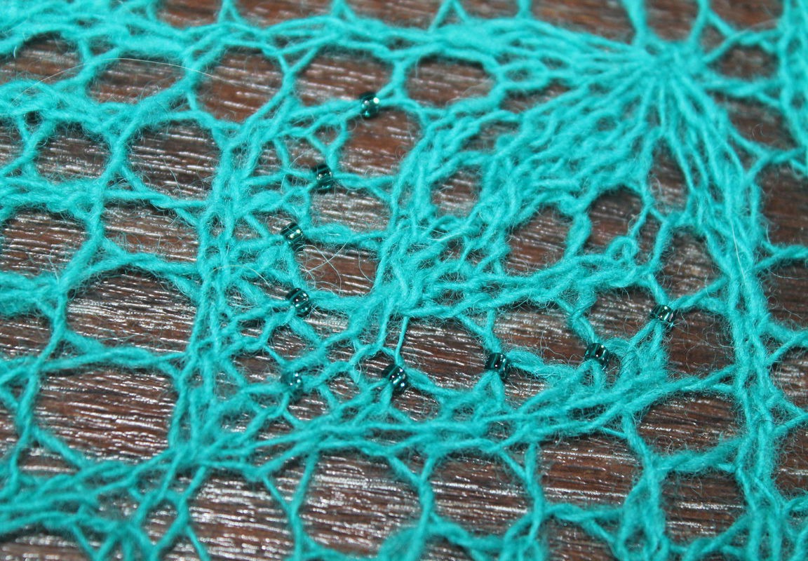 Шаль "Эдем". Пряжа кауни 8/1 - шерсть 100%, цвет Turquoise, размер 200*72, вес 115гр. с бисером.