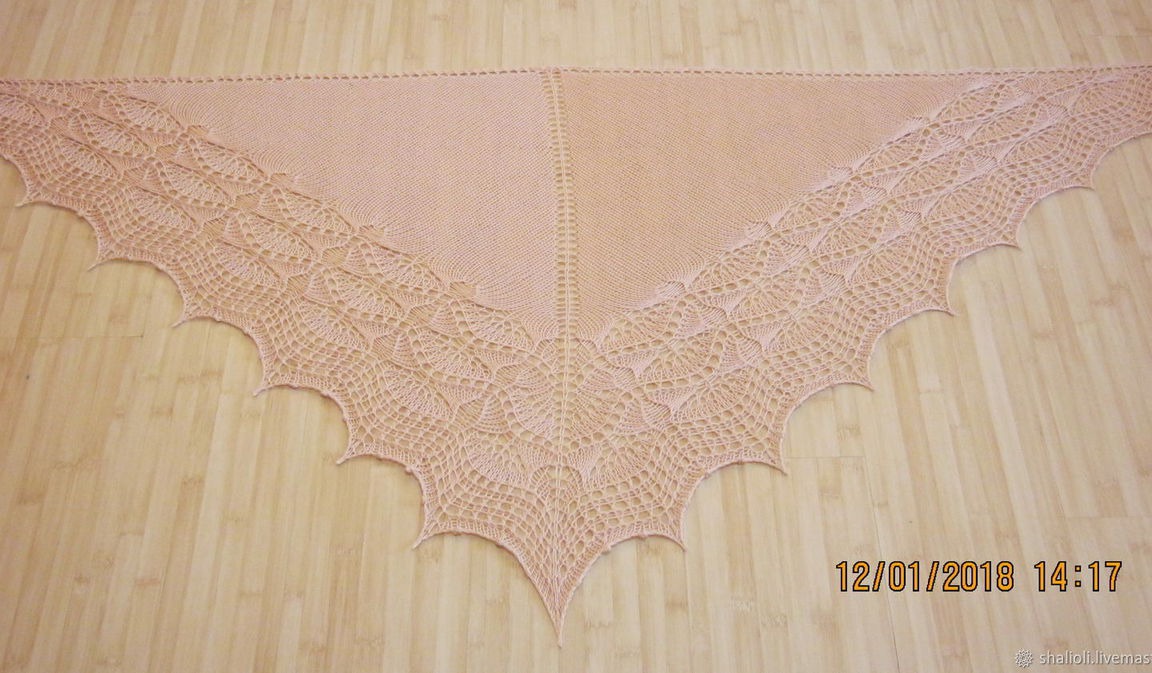 Шаль классической треугольной формы. Связана из нежнейшего мериноса нежного персикового цвета в 4 нити. Легкая,воздушная и теплая. Можно носить как бактус. Хороший подарок. Возможно исполнение в другом цвете, как в секционном, так и однотонном.