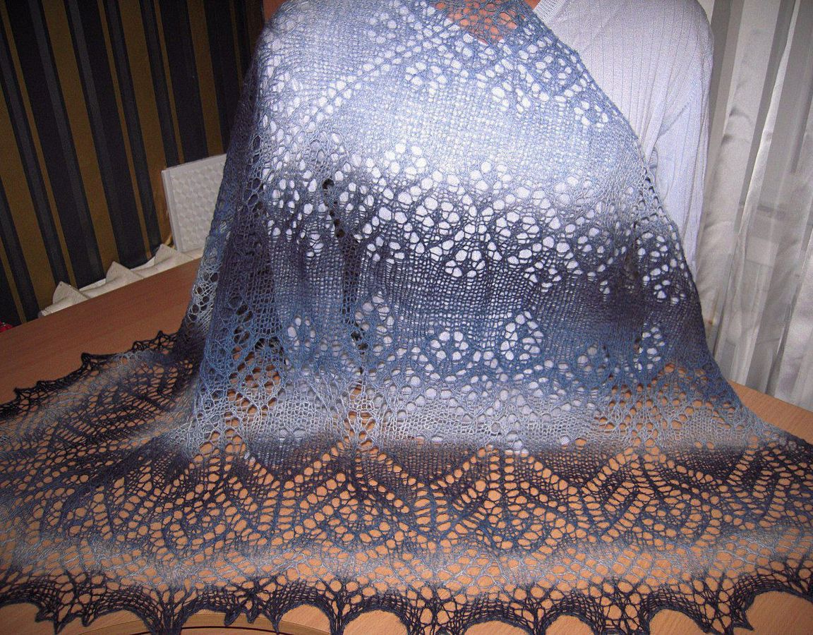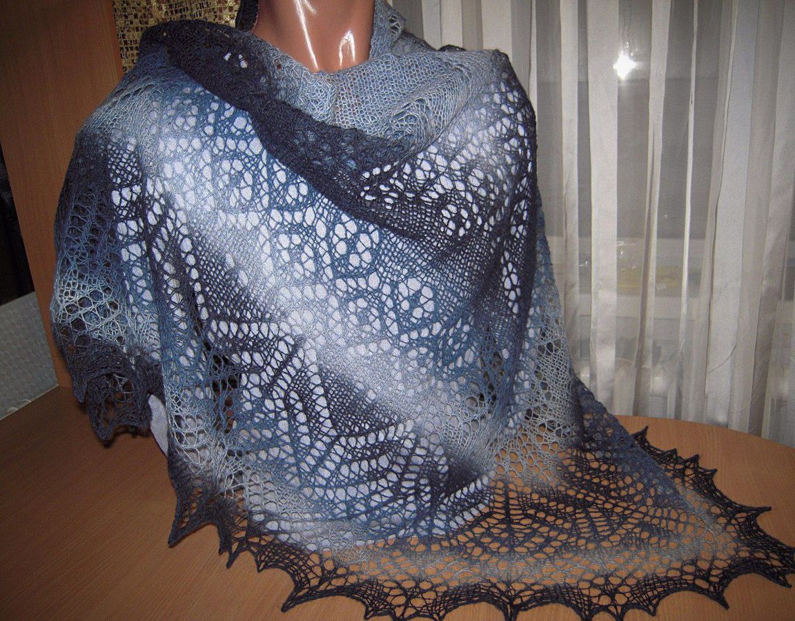 спицами, орнамент, подарок девушке, подарок женщине, шаль ажурная, шаль ручная работа, теплый подарок, подарок на любой случай, аксессуары ручной работы, комбинированный, шерсть 100%, необычный подарок, голубой цвет, любимой, тонкая шерсть