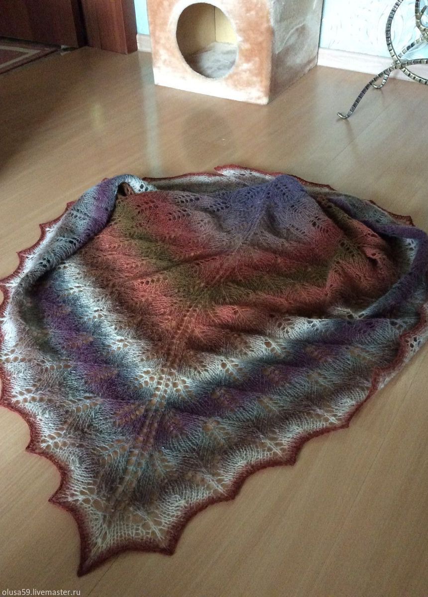 Шаль связана из 100 % шерсти Дундага, имеющей неповторимые расцветки и согревающие качества. Незаменима в холодное время года))) Идеальна для носки на улице поверх тёплой одежды, а также накинув на плечи в прохладном помещении