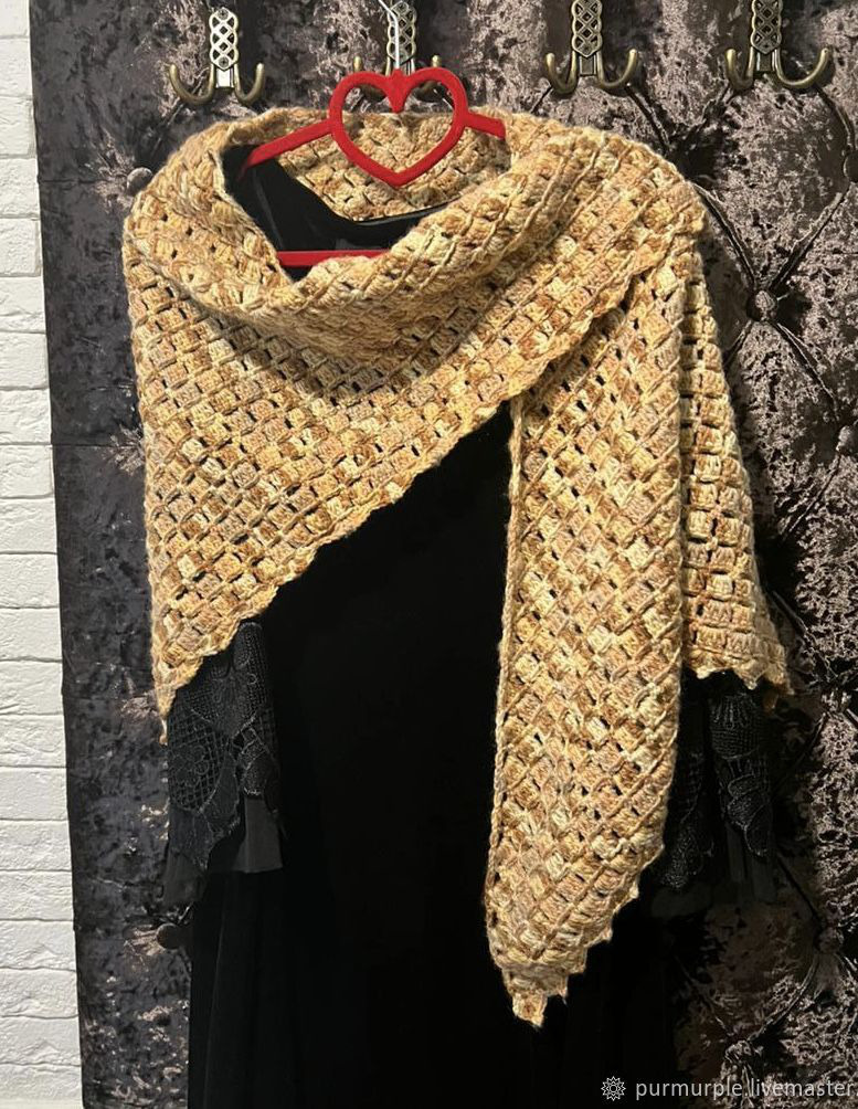 шаль, ручная работа, подарок маме, золотой, подарок девушке, стиль, шаль вязаная, шаль крючком, рукоделие, накидка, ручная вязка, платок, домашний уют, красота, тепло, уют, сделано с душой, накидка вязаная, сделано руками, шали на заказ